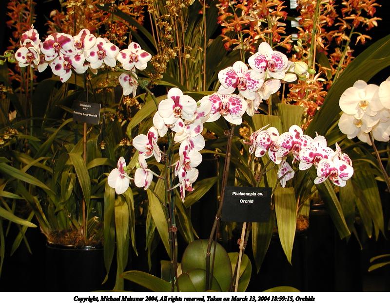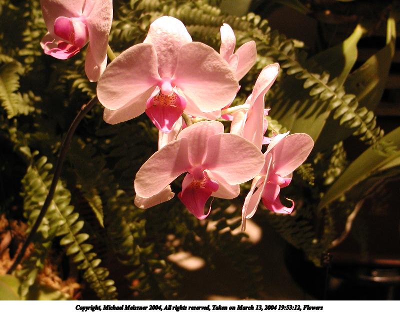 Picture #10: Orchids 800x623, 120,261 bytes (118K), (html file) Copyright, Michael Meissner 2004, All rights reserved Olympus C-2100UZ camera f/2.8, ISO 100, 1/125 sec, 10.5mm, shutter priority, SHQ, cloudy, matrix metering 35mm equivalent focal length 58.0mm Taken by Michael Meissner on March 13, 2004 18:59:15 Last modified on March 28, 2004 at 20:45 Shutter speed of 1/125 or 1/250 may indicate use of flash |