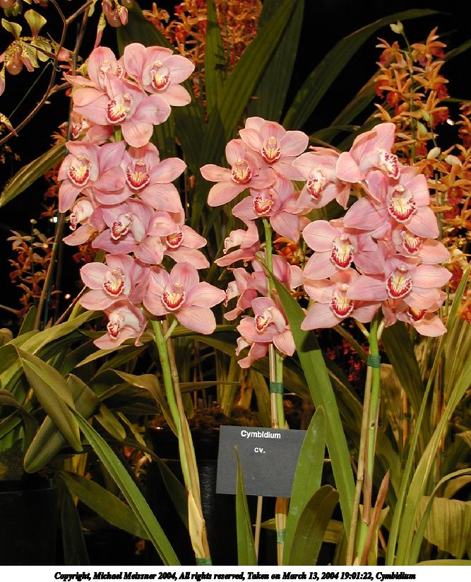 Picture #13: Cymbidium 667x823, 121,807 bytes (119K), (html file) Copyright, Michael Meissner 2004, All rights reserved Olympus C-2100UZ camera f/2.8, ISO 100, 1/125 sec, 12.3mm, shutter priority, SHQ, cloudy, matrix metering 35mm equivalent focal length 68.0mm Taken by Michael Meissner on March 13, 2004 19:01:22 Last modified on March 28, 2004 at 20:47 Shutter speed of 1/125 or 1/250 may indicate use of flash |