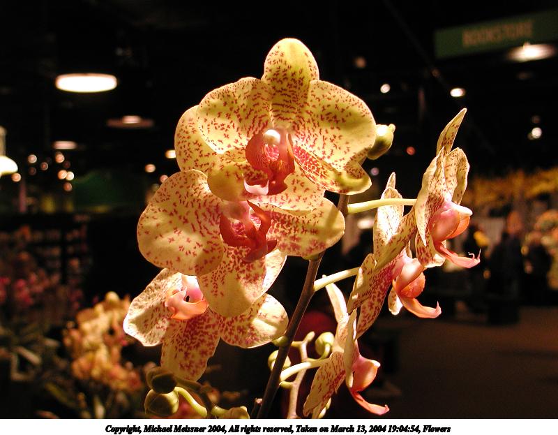 Picture #32: Floral display #5 600x823, 68,655 bytes (68K), (html file) Copyright, Michael Meissner 2004, All rights reserved Olympus C-2100UZ camera f/2.8, ISO 100, 1/125 sec, 13.8mm, auto mode, SHQ, fluorescent, matrix metering 35mm equivalent focal length 77.0mm Taken by Michael Meissner on March 13, 2004 19:15:59 Last modified on March 28, 2004 at 21:03 Shutter speed of 1/125 or 1/250 may indicate use of flash |