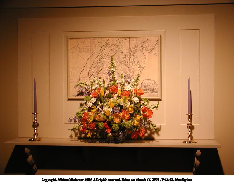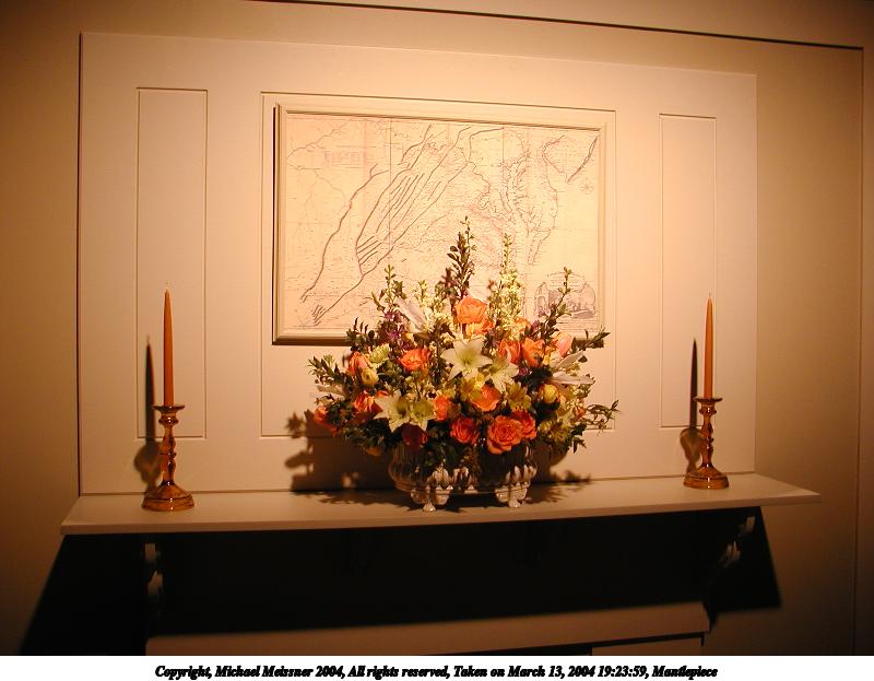 Picture #50: Mantlepiece #2 800x623, 70,305 bytes (69K), (html file) Copyright, Michael Meissner 2004, All rights reserved Olympus C-2100UZ camera f/2.8, ISO 100, 1/125 sec, 8.6mm, auto mode, SHQ, fluorescent, matrix metering 35mm equivalent focal length 48.0mm Taken by Michael Meissner on March 13, 2004 19:24:13 Last modified on March 28, 2004 at 21:12 Shutter speed of 1/125 or 1/250 may indicate use of flash |