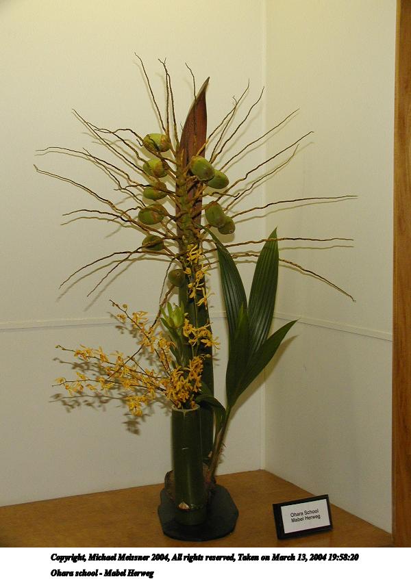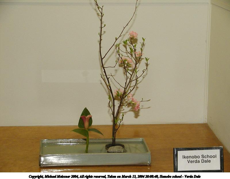 Picture #73: Ikenobo school - Verda Dale 800x623, 54,876 bytes (54K), (html file) Copyright, Michael Meissner 2004, All rights reserved Olympus C-2100UZ camera f/2.8, ISO 200, 1/250 sec, 18.6mm, shutter priority, SHQ, cloudy, matrix metering 35mm equivalent focal length 103.0mm Taken by Michael Meissner on March 13, 2004 20:08:40 Last modified on March 28, 2004 at 21:30 Shutter speed of 1/125 or 1/250 may indicate use of flash |