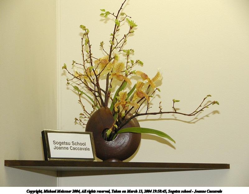 Picture #71: Sogetsu school - Dora Lee 600x823, 62,330 bytes (61K), (html file) Copyright, Michael Meissner 2004, All rights reserved Olympus C-2100UZ camera f/2.8, ISO 200, 1/250 sec, 11.6mm, shutter priority, SHQ, cloudy, matrix metering 35mm equivalent focal length 64.0mm Taken by Michael Meissner on March 13, 2004 20:08:15 Last modified on March 28, 2004 at 21:28 Shutter speed of 1/125 or 1/250 may indicate use of flash |