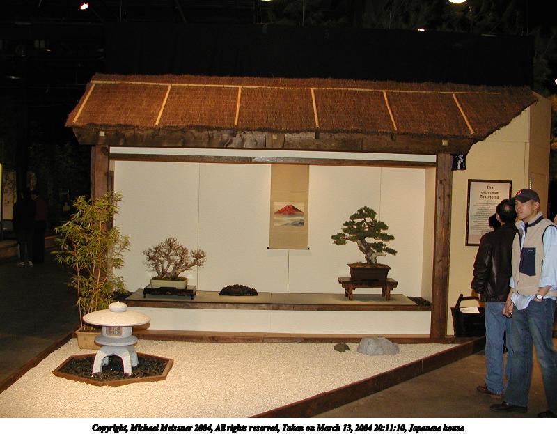 Picture #77: Japanese house 800x623, 79,190 bytes (78K), (html file) Copyright, Michael Meissner 2004, All rights reserved Olympus C-2100UZ camera f/2.8, ISO 200, 1/250 sec, 7.0mm, shutter priority, SHQ, cloudy, matrix metering 35mm equivalent focal length 39.0mm Taken by Michael Meissner on March 13, 2004 20:11:10 Last modified on March 28, 2004 at 21:32 Shutter speed of 1/125 or 1/250 may indicate use of flash |