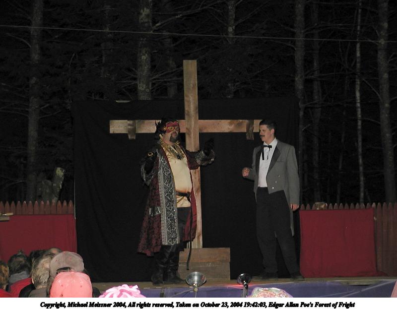 Picture #7: Edgar Allan Poe's Forest of Fright #7 800x623, 79,976 bytes (79K), (html file) Copyright, Michael Meissner 2004, All rights reserved Olympus C-2100UZ camera f/2.8, ISO 200, 1/40 sec, 8.8mm, auto mode, SHQ, cloudy, matrix metering 35mm equivalent focal length 49.0mm Extra equipment used: Promaster 5750DX flash Taken by Michael Meissner on October 23, 2004 21:28:28 Last modified on November 03, 2004 at 13:33 |