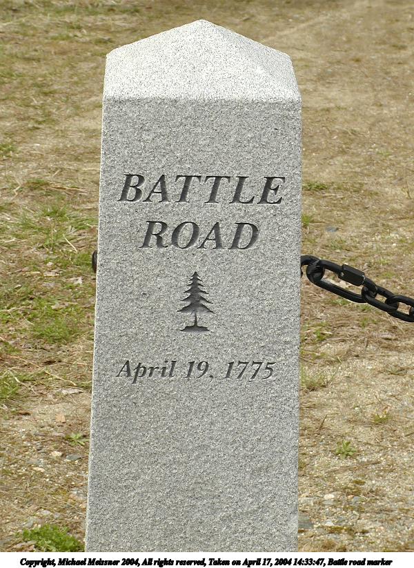 Picture #45: Battle road marker 600x823, 154,451 bytes (151K), (html file) Copyright, Michael Meissner 2004, All rights reserved Olympus C-2100UZ camera f/5.0, ISO 100, 1/500 sec, 25.2mm, auto mode, SHQ, cloudy, matrix metering 35mm equivalent focal length 140.0mm Taken by Michael Meissner on April 17, 2004 14:33:47 Last modified on April 24, 2004 at 08:23 |