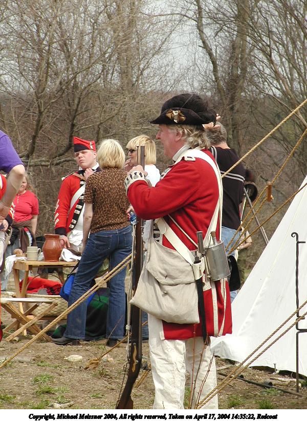 Picture #35: Redcoat #2 600x823, 171,164 bytes (168K), (html file) Copyright, Michael Meissner 2004, All rights reserved Olympus C-2100UZ camera f/3.2, ISO 100, 1/500 sec, 23.2mm, auto mode, SHQ, cloudy, matrix metering 35mm equivalent focal length 129.0mm Taken by Michael Meissner on April 17, 2004 14:49:18 Last modified on April 24, 2004 at 08:28 |