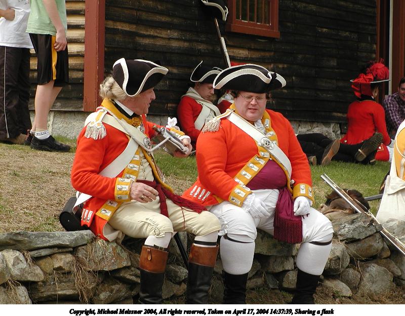 Picture #41: Sharing a flask 800x623, 118,213 bytes (116K), (html file) Copyright, Michael Meissner 2004, All rights reserved Olympus C-2100UZ camera f/4.5, ISO 100, 1/650 sec, 28.5mm, auto mode, SHQ, cloudy, matrix metering 35mm equivalent focal length 158.0mm Taken by Michael Meissner on April 17, 2004 14:37:39 Last modified on April 24, 2004 at 08:25 |