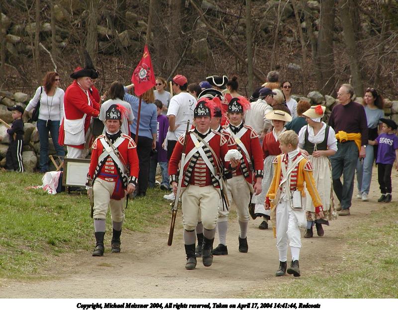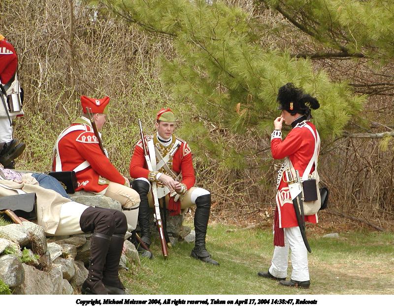 Picture #38: Redcoats #2 800x623, 125,535 bytes (123K), (html file) Copyright, Michael Meissner 2004, All rights reserved Olympus C-2100UZ camera f/4.5, ISO 100, 1/500 sec, 48.3mm, auto mode, SHQ, cloudy, matrix metering 35mm equivalent focal length 268.0mm Taken by Michael Meissner on April 17, 2004 14:41:44 Last modified on April 24, 2004 at 08:27 |