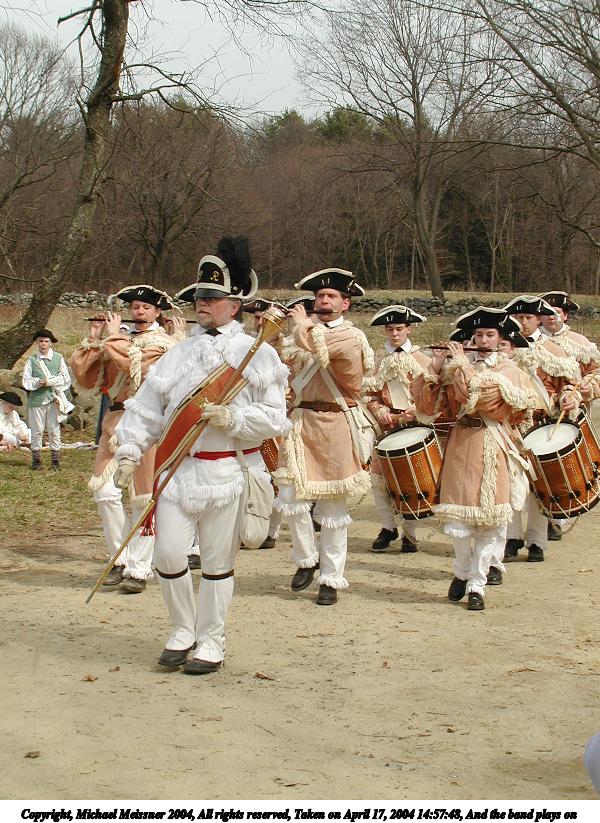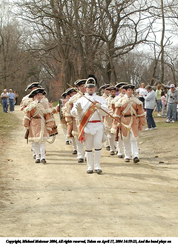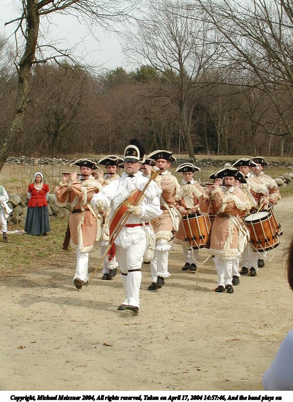 Picture #28: And the band plays on #4 800x623, 138,906 bytes (136K), (html file) Copyright, Michael Meissner 2004, All rights reserved Olympus C-2100UZ camera f/4.5, ISO 100, 1/650 sec, 17.9mm, auto mode, SHQ, cloudy, matrix metering 35mm equivalent focal length 99.0mm Taken by Michael Meissner on April 17, 2004 14:59:35 Last modified on April 24, 2004 at 08:32 |