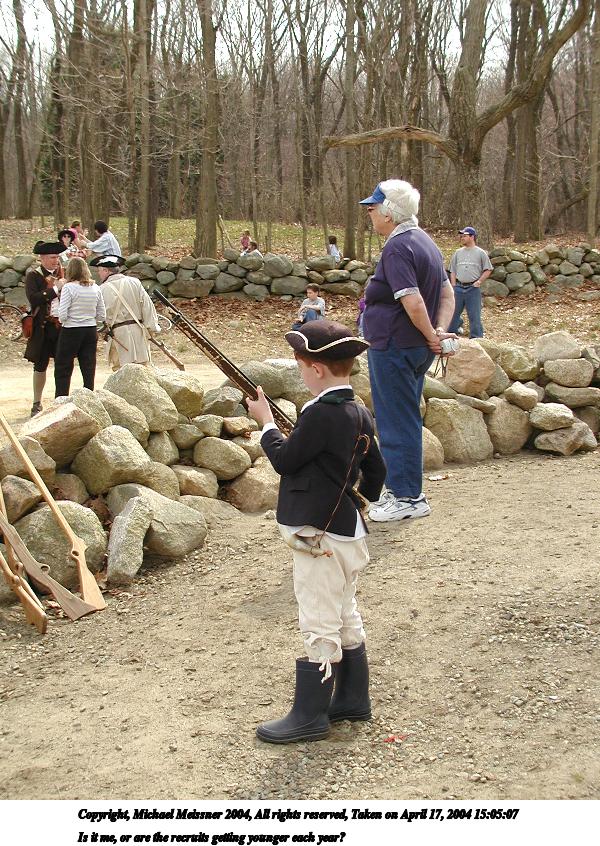 Picture #25: Is it me, or are the recruits getting younger each year? 600x846, 160,461 bytes (157K), (html file) Copyright, Michael Meissner 2004, All rights reserved Olympus C-2100UZ camera f/3.2, ISO 100, 1/650 sec, 11.0mm, auto mode, SHQ, cloudy, matrix metering 35mm equivalent focal length 61.0mm Taken by Michael Meissner on April 17, 2004 15:05:07 Last modified on April 24, 2004 at 08:33 |