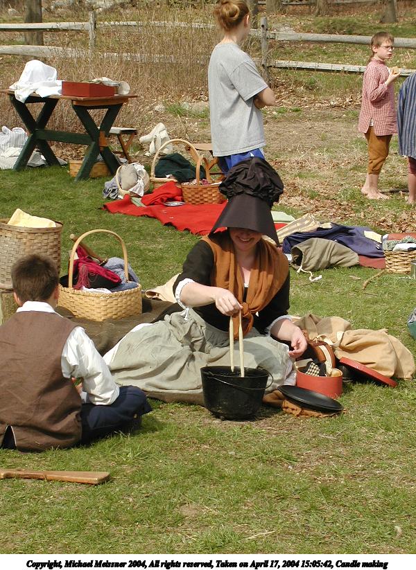 Picture #23: Candle making 600x823, 151,868 bytes (149K), (html file) Copyright, Michael Meissner 2004, All rights reserved Olympus C-2100UZ camera f/5.0, ISO 100, 1/650 sec, 17.3mm, auto mode, SHQ, cloudy, matrix metering 35mm equivalent focal length 96.0mm Taken by Michael Meissner on April 17, 2004 15:05:42 Last modified on April 24, 2004 at 08:34 |