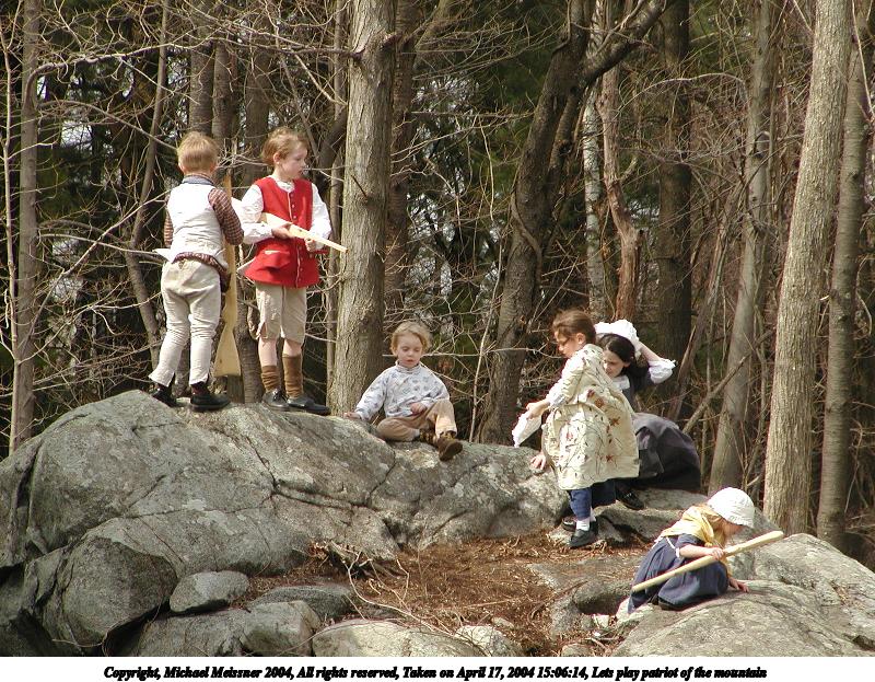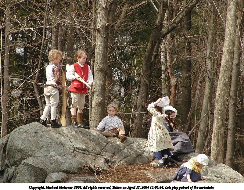 Picture #21: Lets play patriot of the mountain 800x623, 168,834 bytes (165K), (html file) Copyright, Michael Meissner 2004, All rights reserved Olympus C-2100UZ camera f/4.5, ISO 100, 1/400 sec, 48.3mm, auto mode, SHQ, cloudy, matrix metering 35mm equivalent focal length 268.0mm Taken by Michael Meissner on April 17, 2004 15:06:14 Last modified on April 24, 2004 at 08:35 |