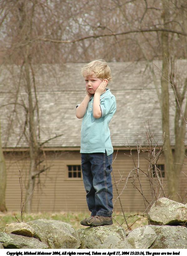 Picture #5: The guns are too loud 600x823, 86,544 bytes (85K), (html file) Copyright, Michael Meissner 2004, All rights reserved Olympus C-2100UZ camera f/3.5, ISO 100, 1/650 sec, 51.0mm, auto mode, SHQ, cloudy, matrix metering 35mm equivalent focal length 283.0mm Taken by Michael Meissner on April 17, 2004 15:23:16 Last modified on April 24, 2004 at 08:43 |