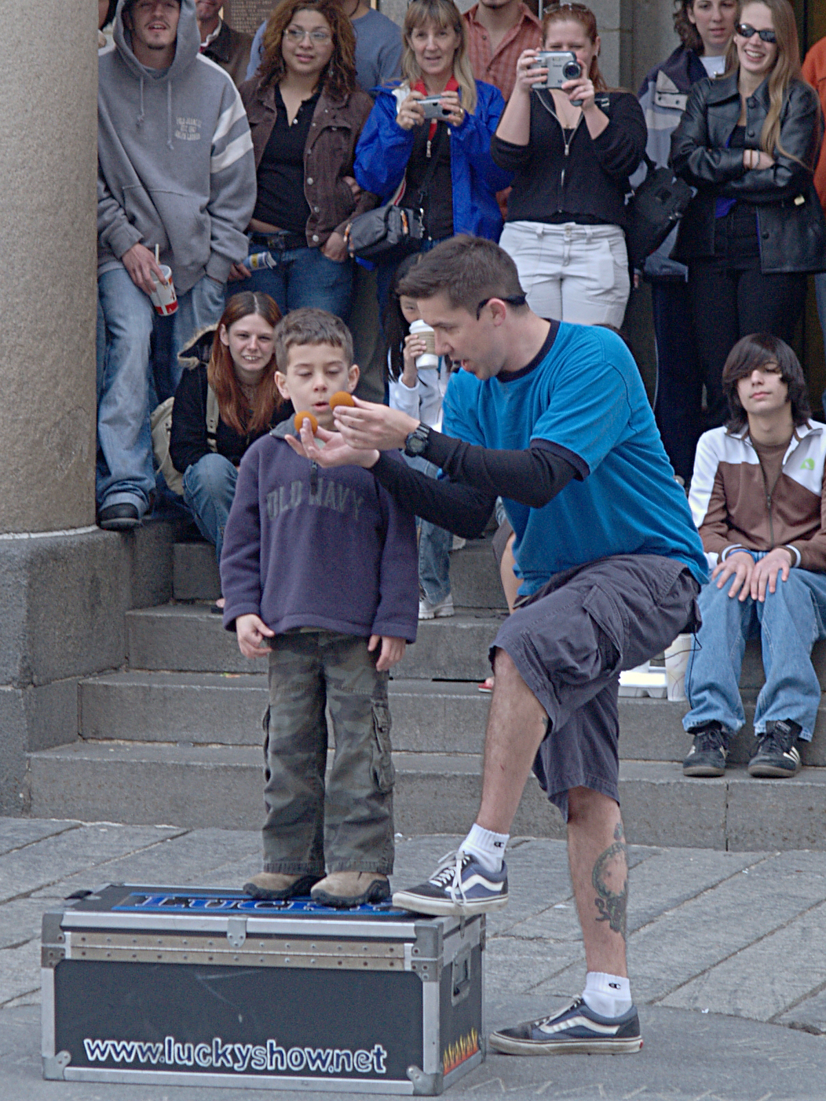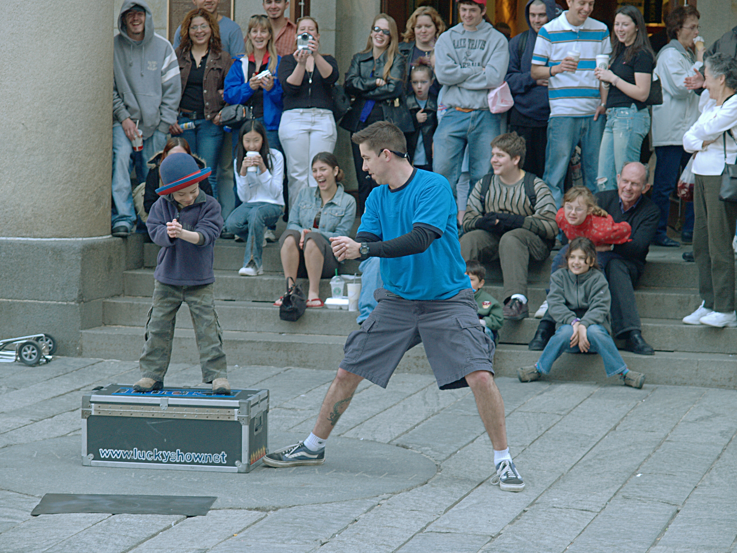 Picture #27: The conclusion of any street performance Thumb: 240x320, 31,009 bytes (31K) Small: 480x686, 72,958 bytes (72K), (html file) Large: 1920x2560, 4,972,753 bytes (4.7M), (html file) Copyright, Michael Meissner 2005, All rights reserved Olympus E-1 camera with Olympus 14-54mm f/2.8-3.5 lens f/5.0, ISO 400, 1/200 sec, 38.0mm, auto mode, SHQ, matrix metering, -2 contrast, +2 sharpening 35mm equivalent focal length 76.0mm Taken by Michael Meissner on April 09, 2005 14:15:58 Last modified on April 12, 2005 at 09:37 |