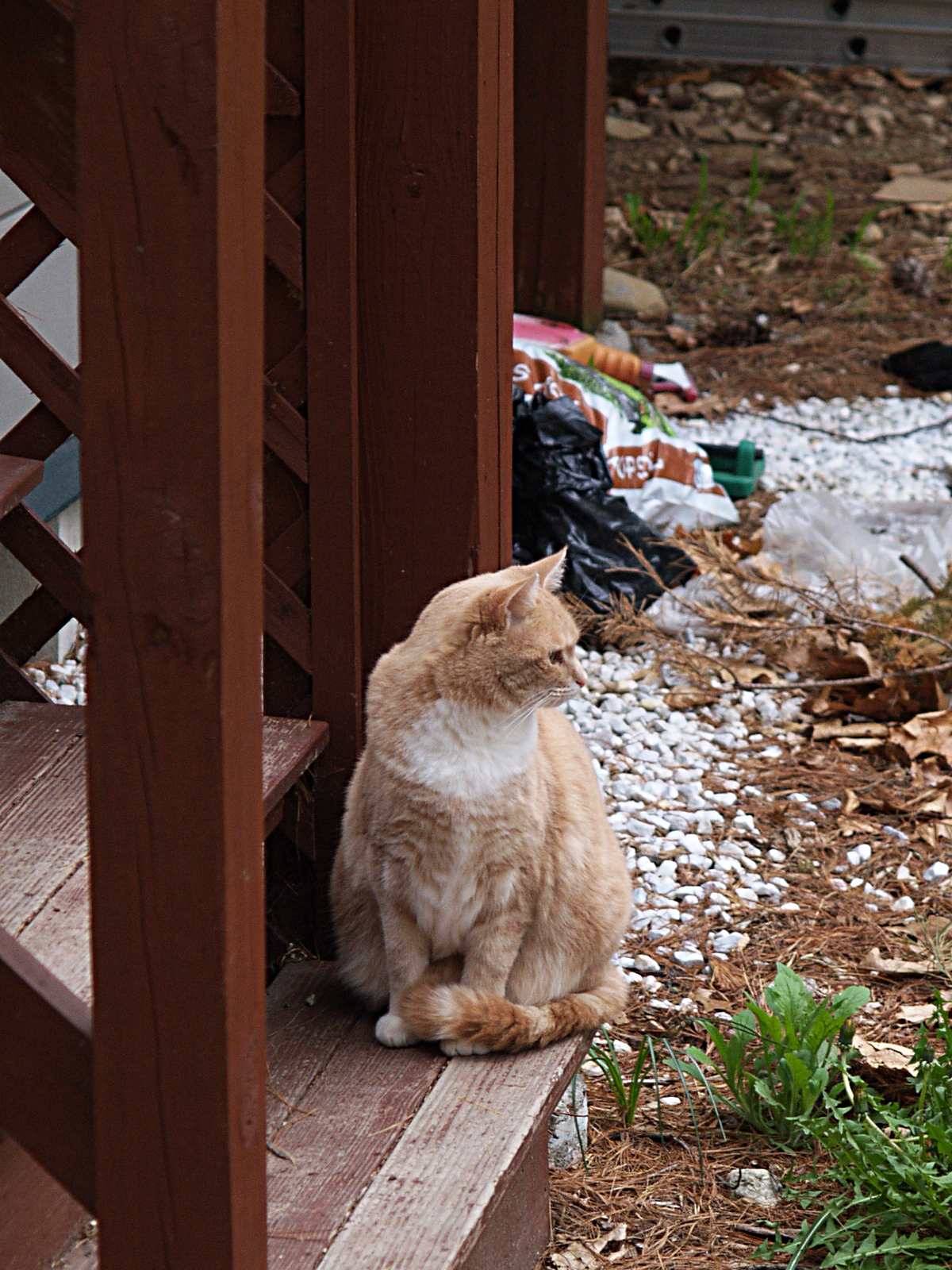Picture #4: Guard kitty Thumb: 240x320, 41,738 bytes (41K) Small: 480x686, 98,582 bytes (97K), (html file) Large: 1920x2560, 5,268,595 bytes (5.0M), (html file) Copyright, Michael Meissner 2005, All rights reserved Olympus E-1 camera with Olympus 14-54mm f/2.8-3.5 lens f/3.5, ISO 200, 1/80 sec, 52.0mm, auto mode, SHQ, matrix metering, -2 contrast, +2 sharpening 35mm equivalent focal length 104.0mm Taken by Michael Meissner on April 30, 2005 07:35:04 Last modified on May 01, 2005 at 07:48 |