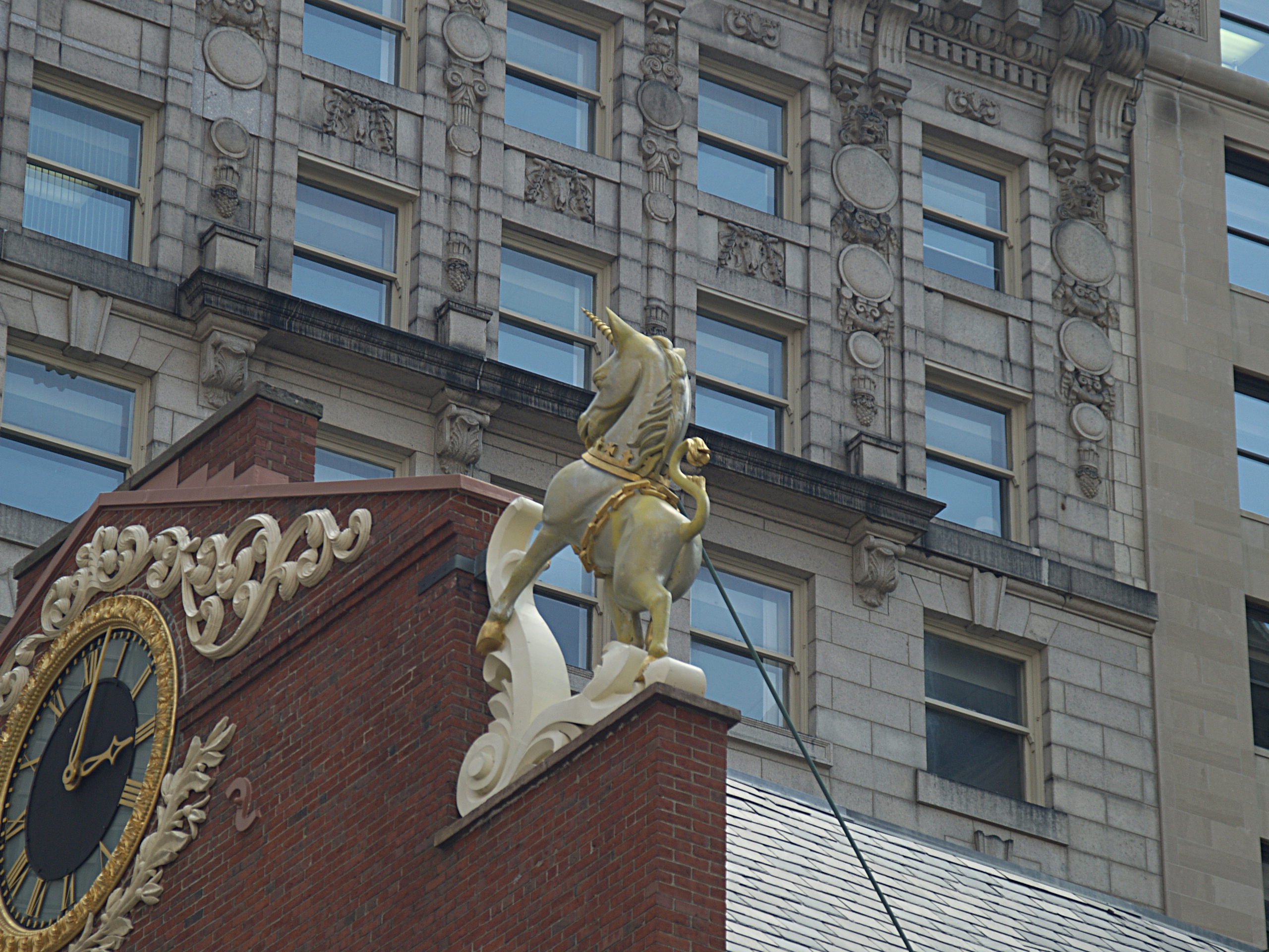Picture #47: Unicorn statue on the old state house Small: 640x503, 86,493 bytes (85K), (html file) Large: 2560x1920, 5,235,258 bytes (5.0M), (html file) Copyright, Michael Meissner 2005, All rights reserved Olympus E-1 camera with Sigma 18-125mm f/3.5-5.6 lens f/5.5, ISO 100, 1/100 sec, 77.0mm, auto mode, SHQ, matrix metering, -2 contrast, +2 sharpening 35mm equivalent focal length 154.0mm Taken by Michael Meissner on June 18, 2005 15:06:43 Last modified on June 18, 2005 at 21:12 |