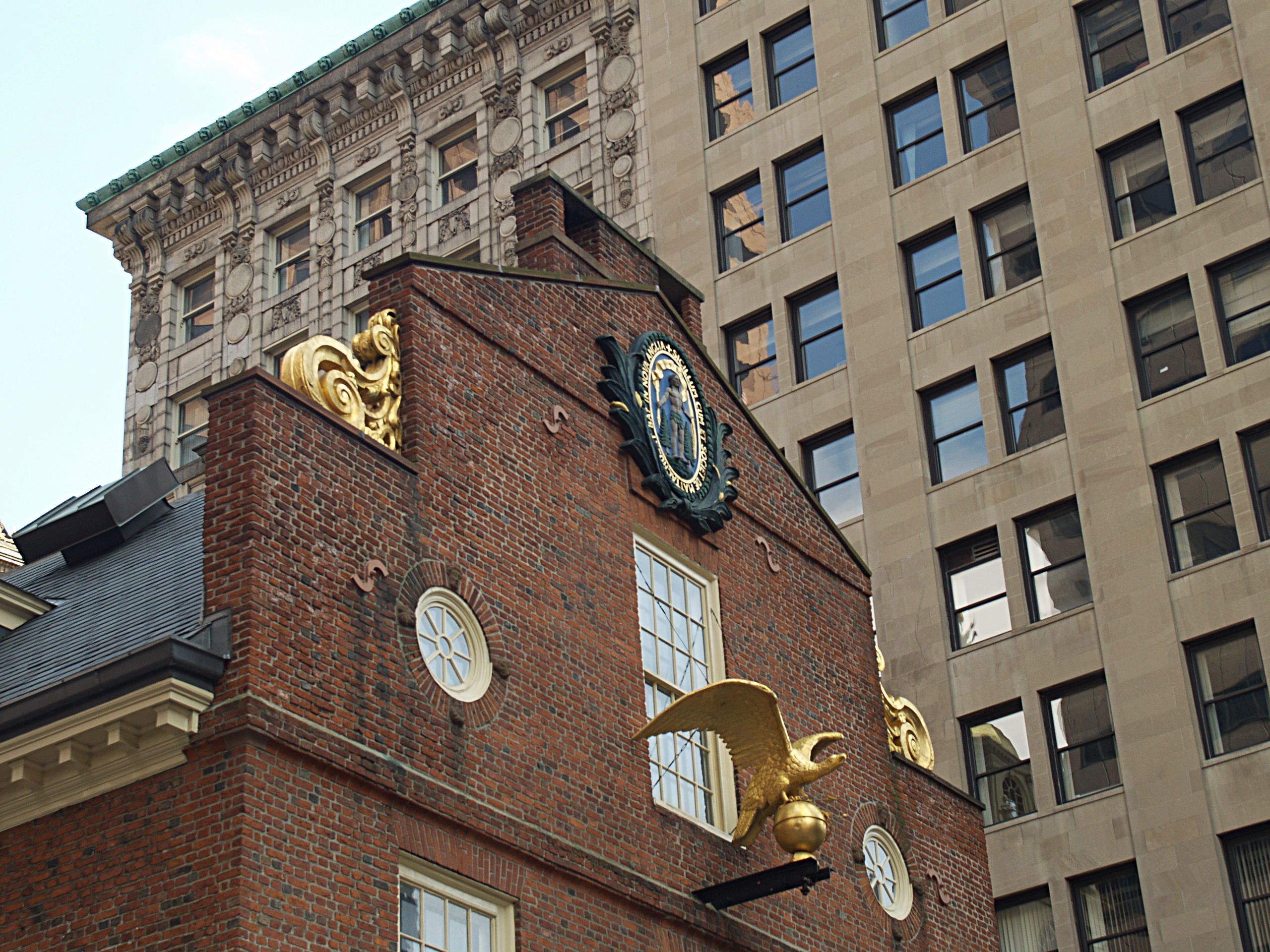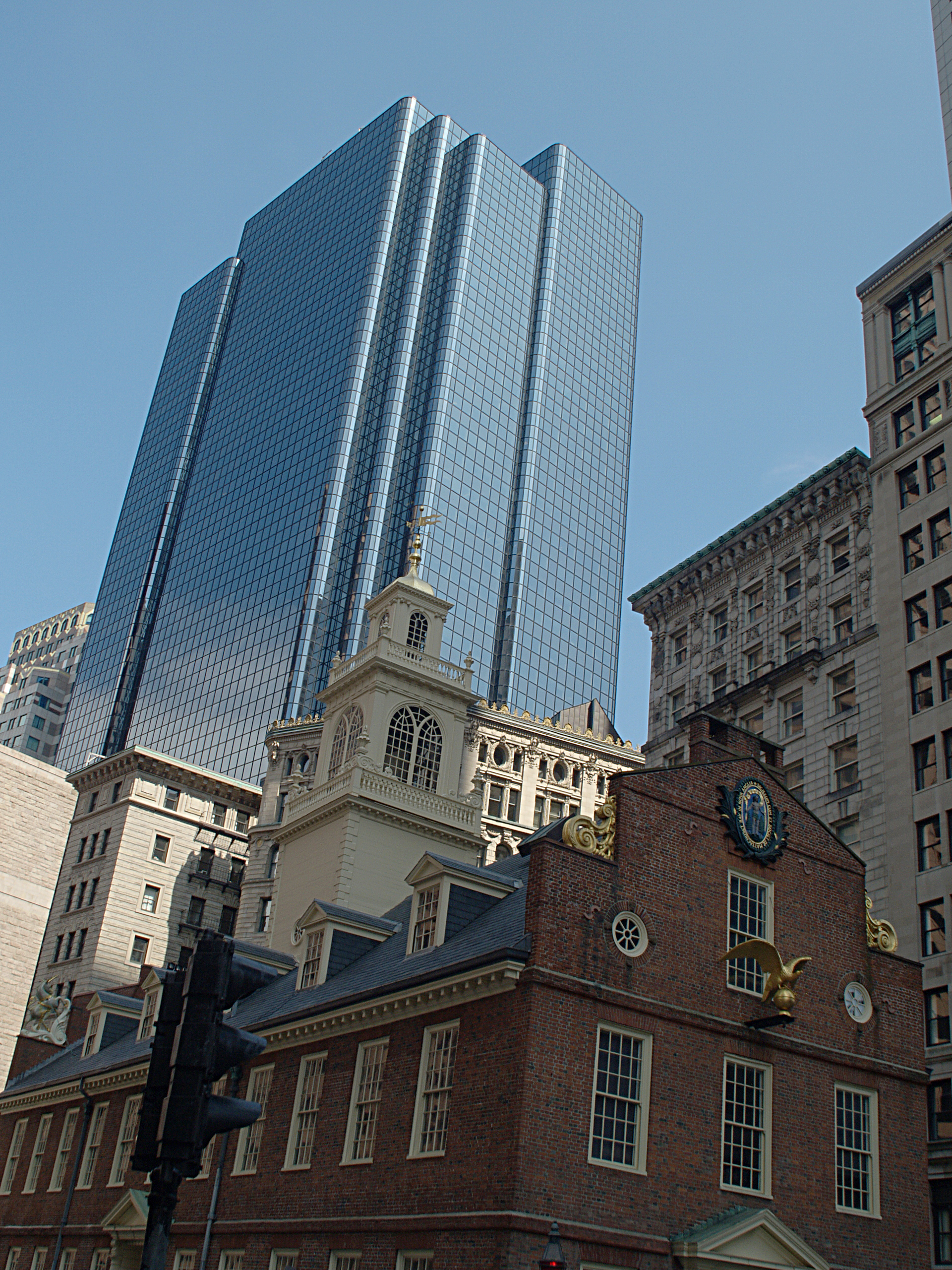 Picture #43: Boston: old and new Small: 480x686, 88,611 bytes (87K), (html file) Large: 1920x2560, 5,633,966 bytes (5.4M), (html file) Copyright, Michael Meissner 2005, All rights reserved Olympus E-1 camera with Sigma 18-125mm f/3.5-5.6 lens f/7.1, ISO 100, 1/160 sec, 18.0mm, auto mode, SHQ, matrix metering, -2 contrast, +2 sharpening 35mm equivalent focal length 36.0mm Taken by Michael Meissner on June 18, 2005 15:09:12 Last modified on June 18, 2005 at 21:12 I liked the juxtaposition of the old state house and the skyscraper in the background. I just wish I had gotten the angles straight. |