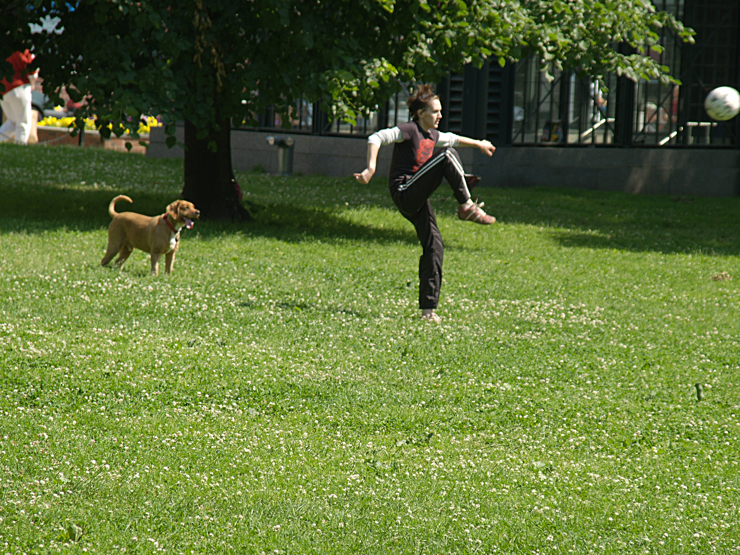 Picture #27: Soccer on the common Small: 640x503, 109,417 bytes (107K), (html file) Large: 2560x1920, 5,737,484 bytes (5.5M), (html file) Copyright, Michael Meissner 2005, All rights reserved Olympus E-1 camera with Sigma 18-125mm f/3.5-5.6 lens f/5.6, ISO 100, 1/250 sec, 103.0mm, auto mode, SHQ, matrix metering, -2 contrast, +2 sharpening 35mm equivalent focal length 206.0mm Taken by Michael Meissner on June 18, 2005 15:46:20 Last modified on June 18, 2005 at 21:17 |