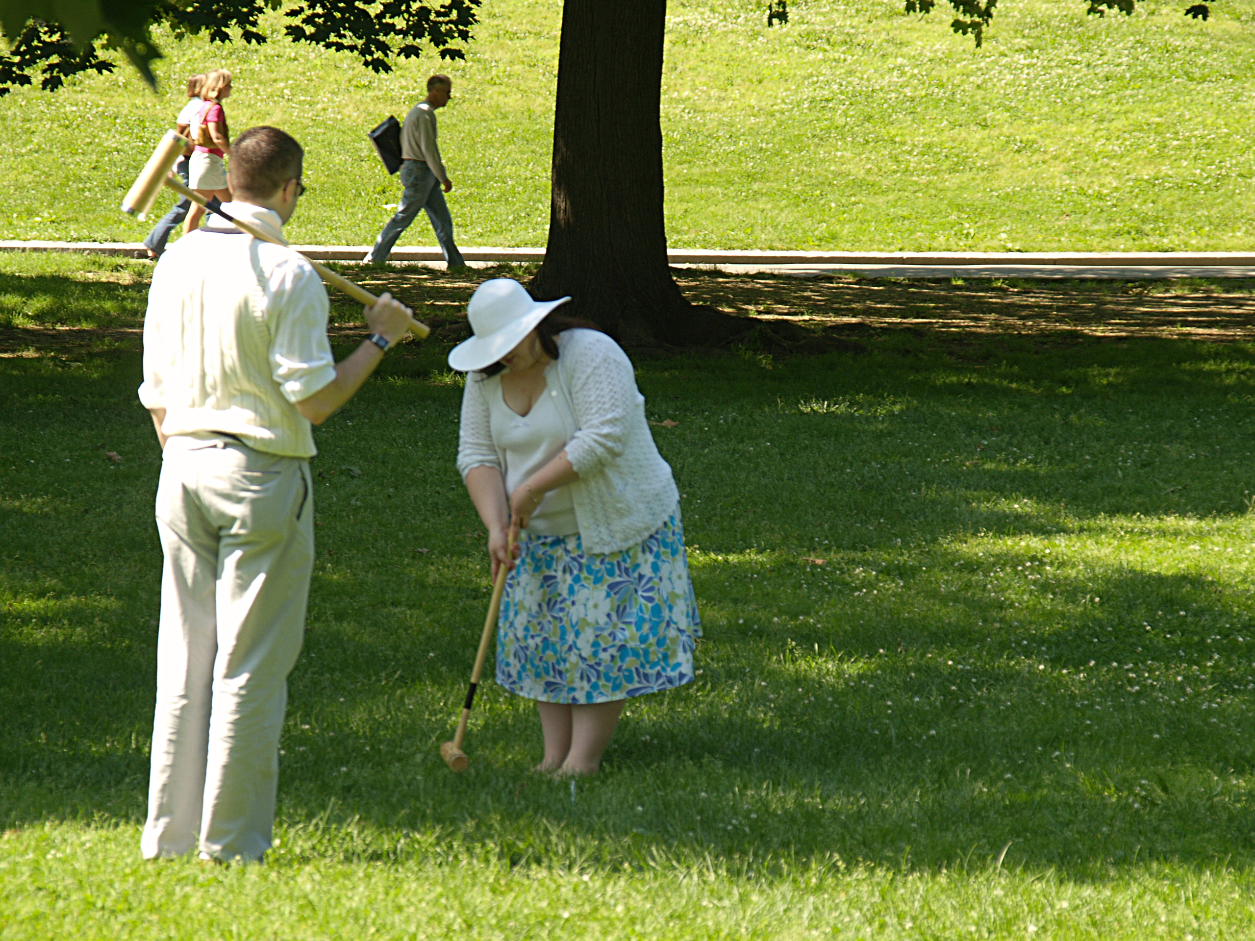 Picture #26: Old tyme croquet #4 Small: 640x503, 95,021 bytes (93K), (html file) Large: 2560x1920, 5,033,351 bytes (4.8M), (html file) Copyright, Michael Meissner 2005, All rights reserved Olympus E-1 camera with Sigma 18-125mm f/3.5-5.6 lens f/5.6, ISO 100, 1/125 sec, 92.0mm, auto mode, SHQ, matrix metering, -2 contrast, +2 sharpening 35mm equivalent focal length 184.0mm Taken by Michael Meissner on June 18, 2005 15:47:12 Last modified on June 18, 2005 at 21:18 |