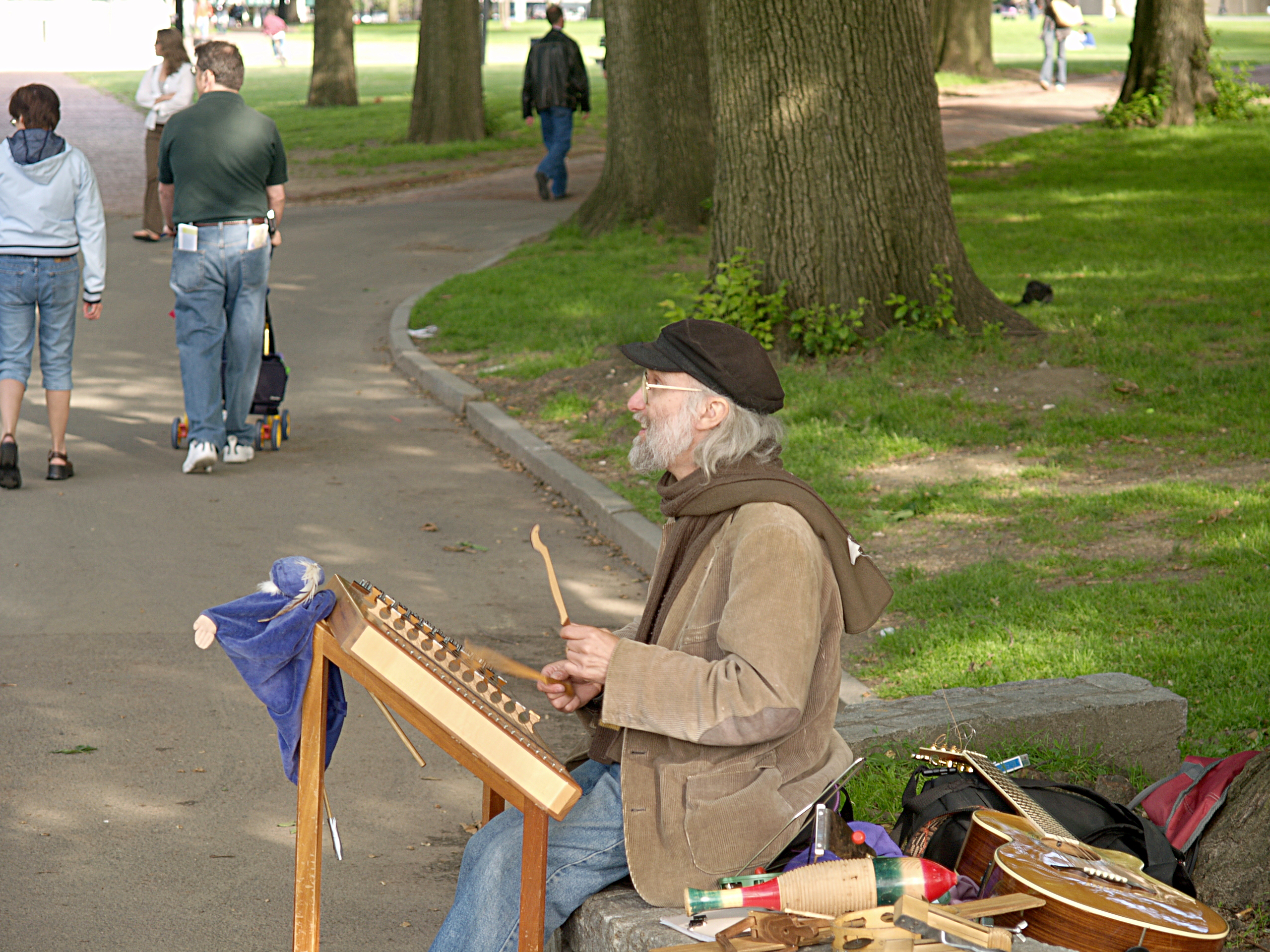 Picture #5: Boston musician Small: 640x503, 80,410 bytes (79K), (html file) Large: 2560x1920, 5,348,891 bytes (5.1M), (html file) Copyright, Michael Meissner 2005, All rights reserved Olympus E-1 camera with Olympus 14-54mm f/2.8-3.5 lens f/3.5, ISO 100, 1/100 sec, 54.0mm, auto mode, SHQ, matrix metering, -2 contrast, +2 sharpening 35mm equivalent focal length 108.0mm Taken by Michael Meissner on June 18, 2005 17:34:07 Last modified on June 18, 2005 at 21:28 |