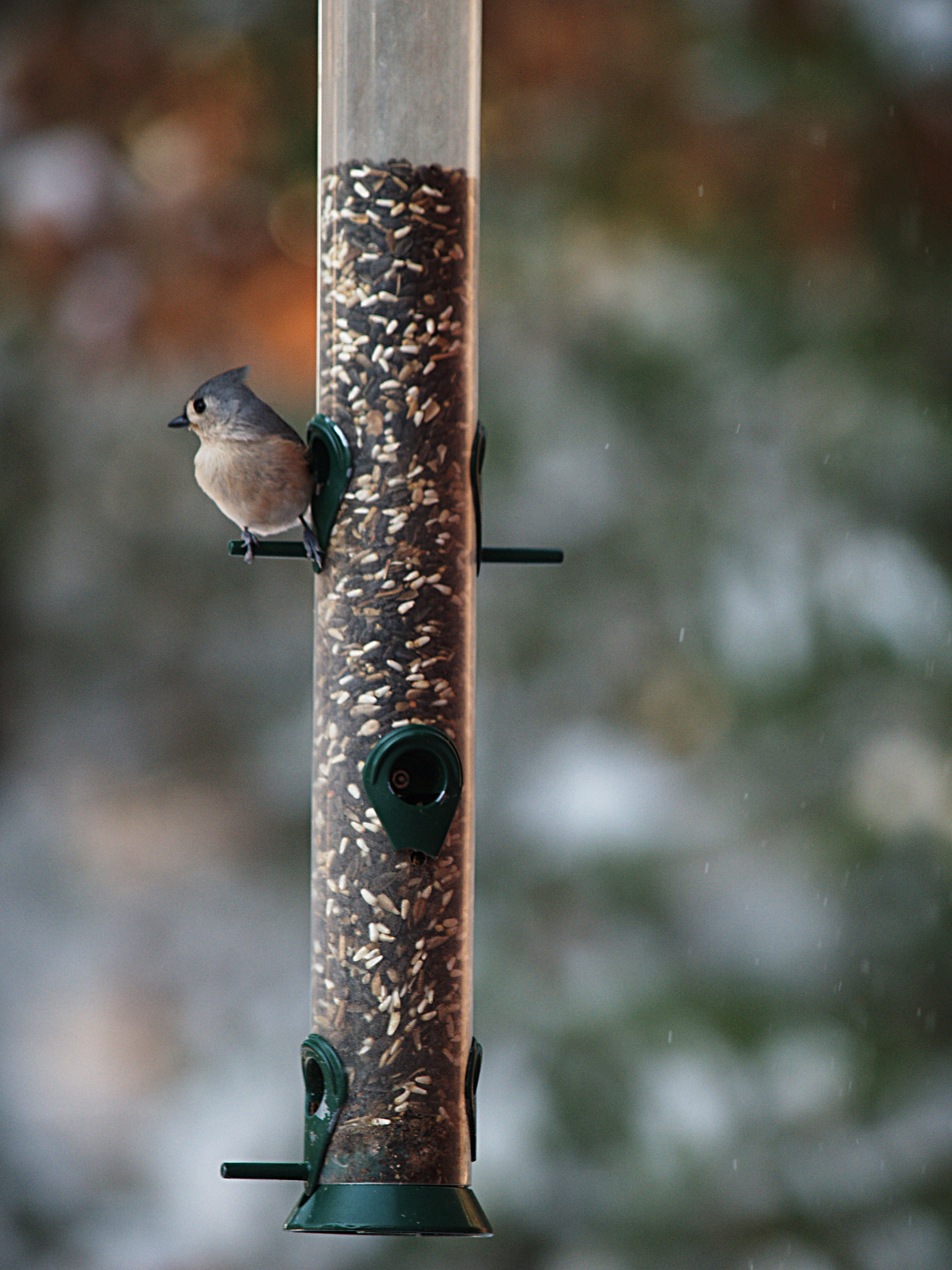 Picture #2: Birds at the feeder Thumb: 240x320, 30,078 bytes (30K) Small: 480x686, 74,474 bytes (73K), (html file) Large: 1920x2560, 3,032,627 bytes (2.9M), (html file) Copyright, Michael Meissner 2005, All rights reserved Olympus E-1 camera with Olympus 50-200mm f/2.8-3.5 lens f/4.0, ISO 200, 1/640 sec, 76.0mm, aperture priority, SHQ, matrix metering, +2 sharpening 35mm equivalent focal length 152.0mm Extra equipment used: Taken through a window Taken by Michael Meissner on December 10, 2005 10:41:04 Last modified on December 10, 2005 at 11:20 |