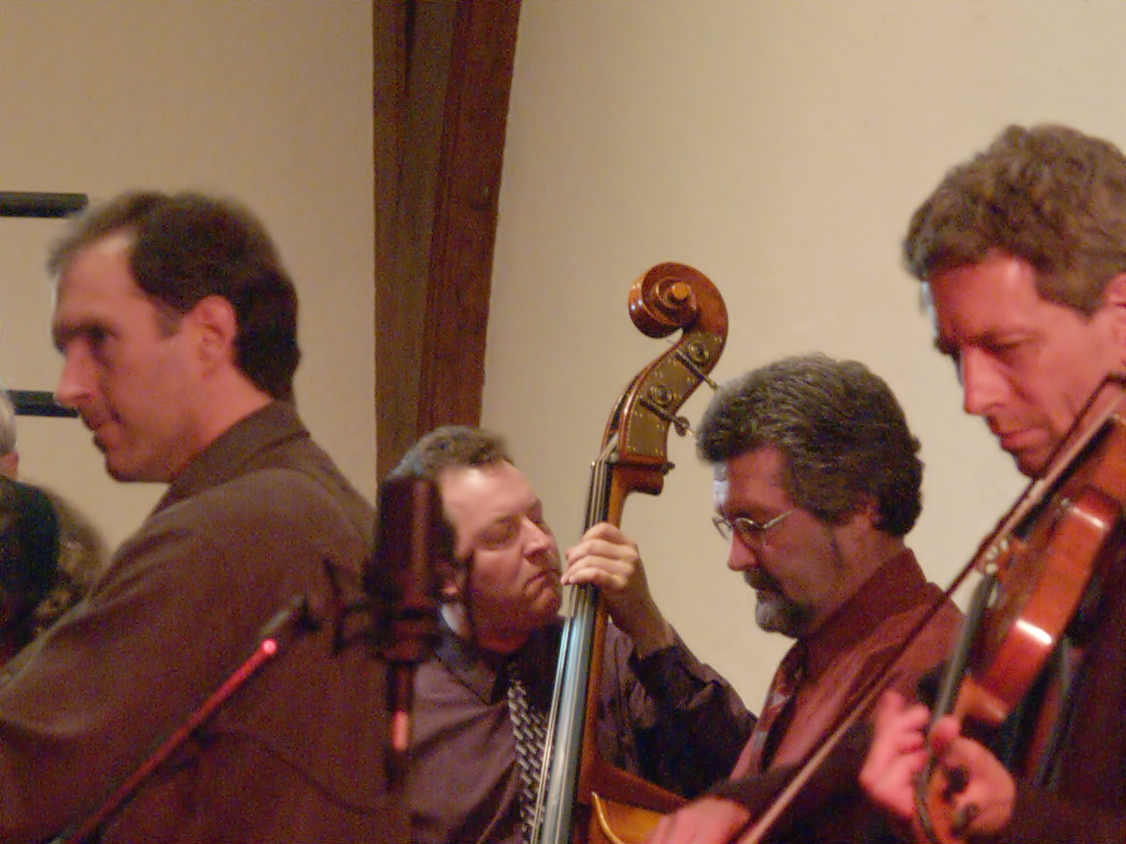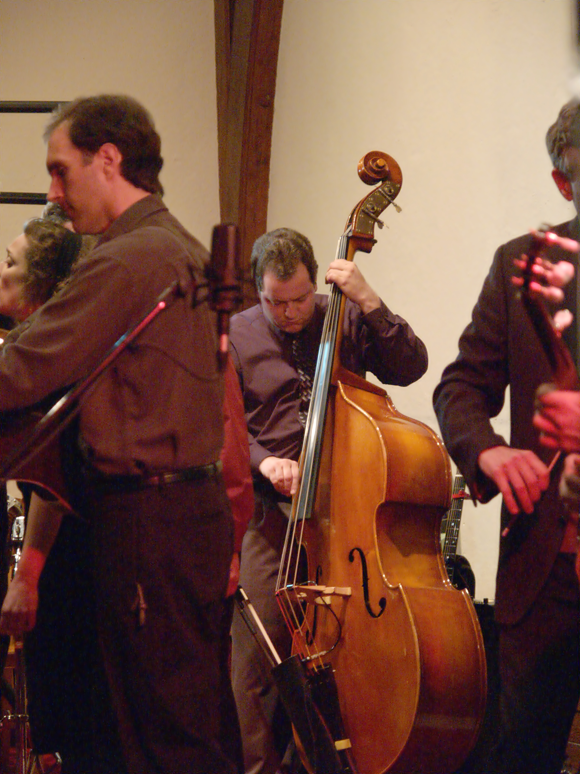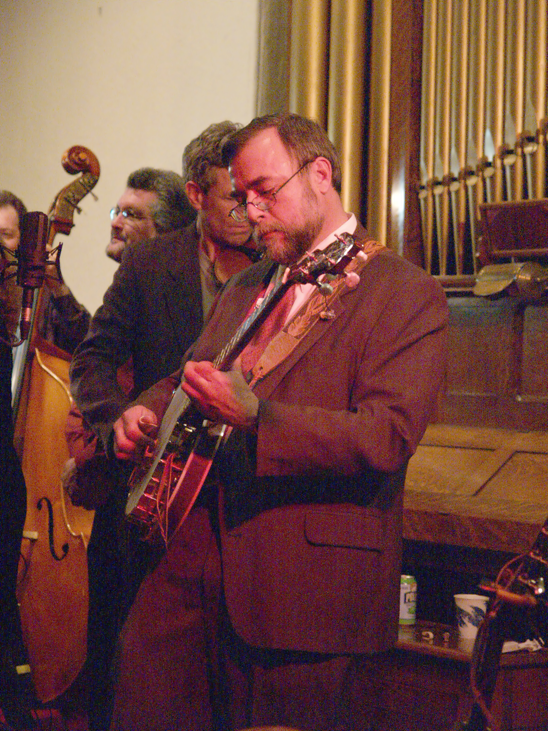 Picture #10: Bluegrass Gospel Project #11 Small: 640x503, 80,488 bytes (79K), (html file) Large: 2560x1920, 4,801,480 bytes (4.6M), (html file) Copyright, Michael Meissner 2005, All rights reserved Olympus E-1 camera with Olympus 14-54mm f/2.8-3.5 lens f/3.2, ISO 1600, 1/50 sec, 19.0mm, auto mode, SHQ, matrix metering, -2 contrast, +2 sharpening 35mm equivalent focal length 38.0mm Taken by Michael Meissner on May 06, 2005 20:36:02 Last modified on May 07, 2005 at 07:11 |