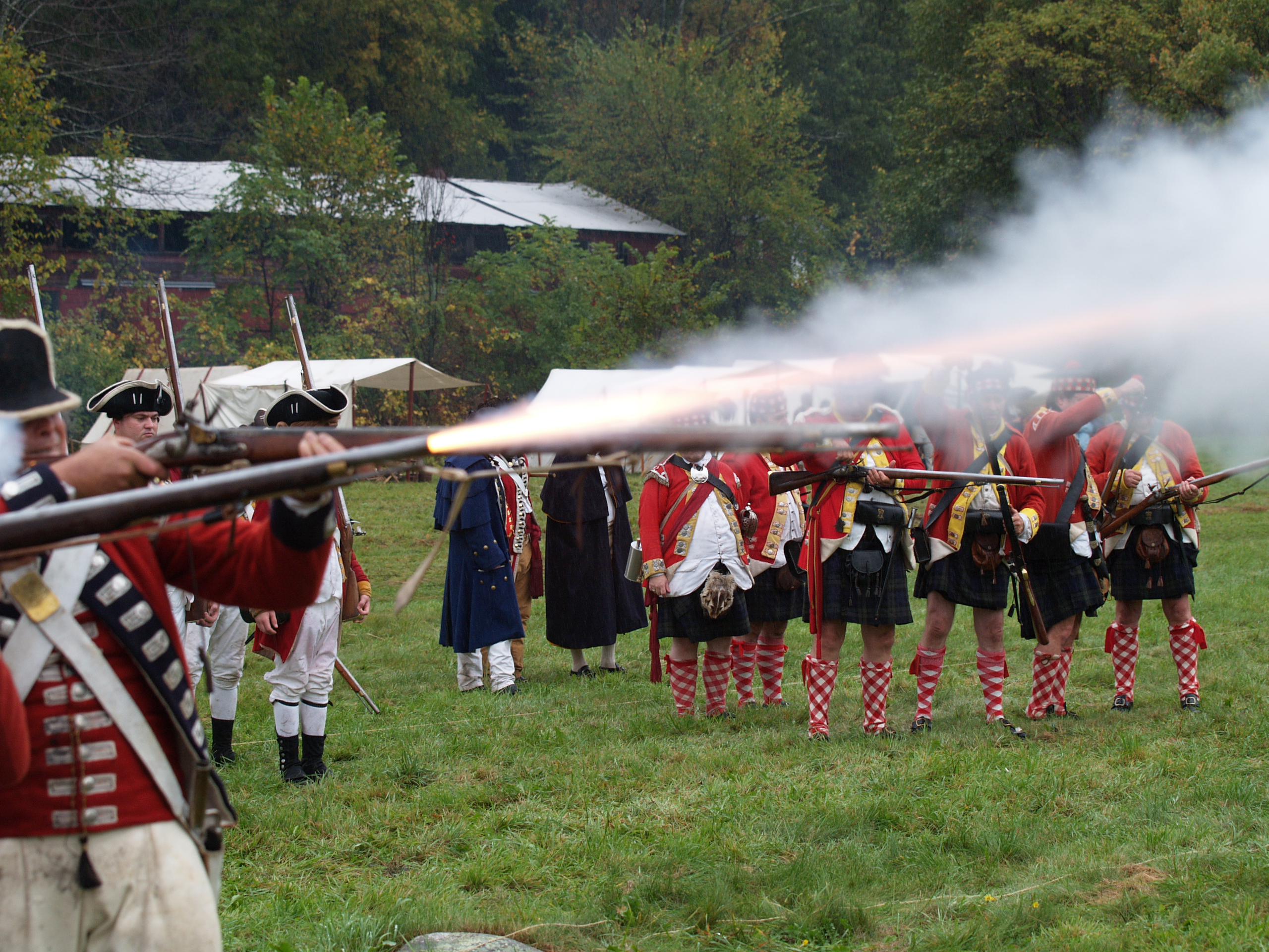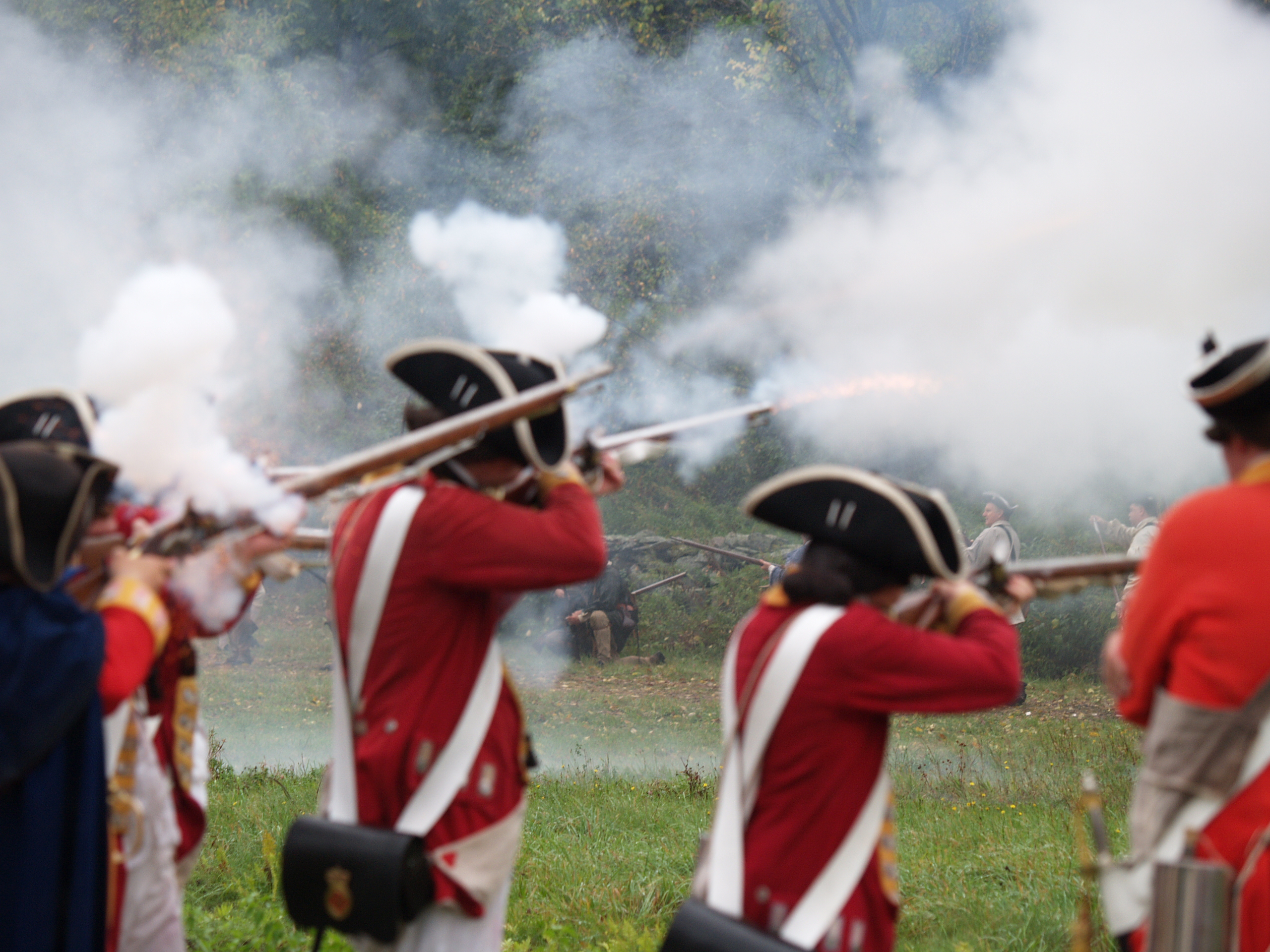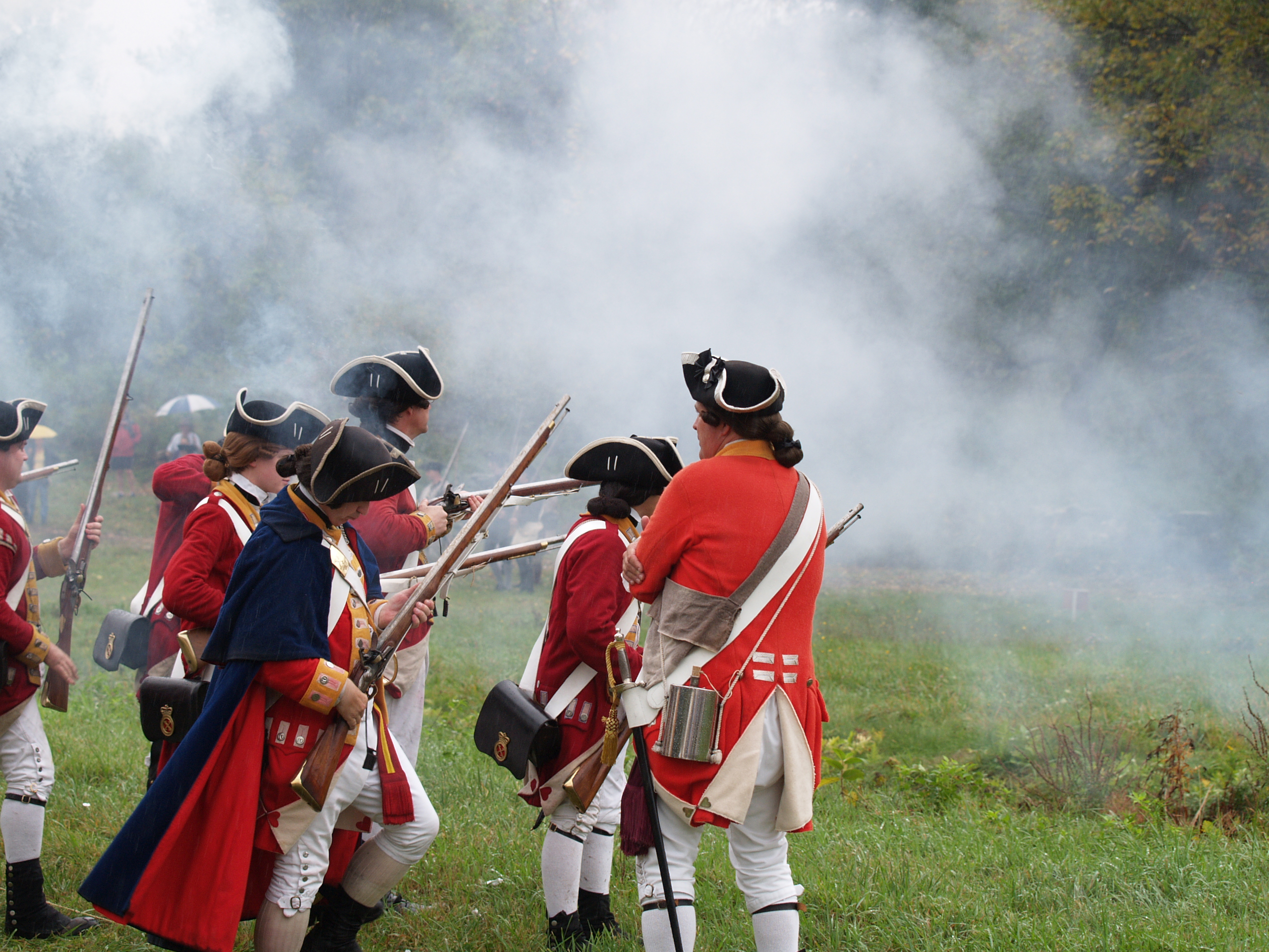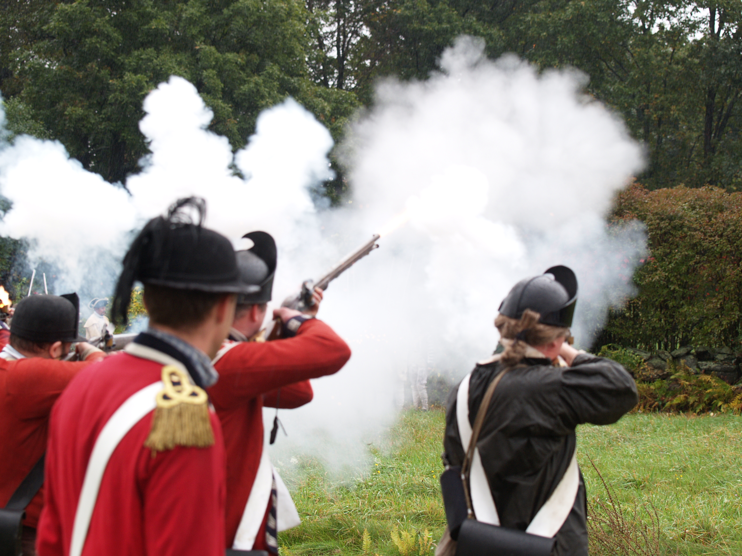 Picture #6: Redcoats #5 Small: 640x503, 65,070 bytes (64K), (html file) Large: 2560x1920, 3,186,342 bytes (3.0M), (html file) Copyright, Michael Meissner 2005, All rights reserved Olympus E-1 camera with Olympus 50-200mm f/2.8-3.5 lens f/3.2, ISO 200, 1/250 sec, 79.0mm, auto mode, SHQ, matrix metering, +2 sharpening 35mm equivalent focal length 158.0mm Taken by Michael Meissner on October 08, 2005 15:19:43 Last modified on October 08, 2005 at 18:24 |