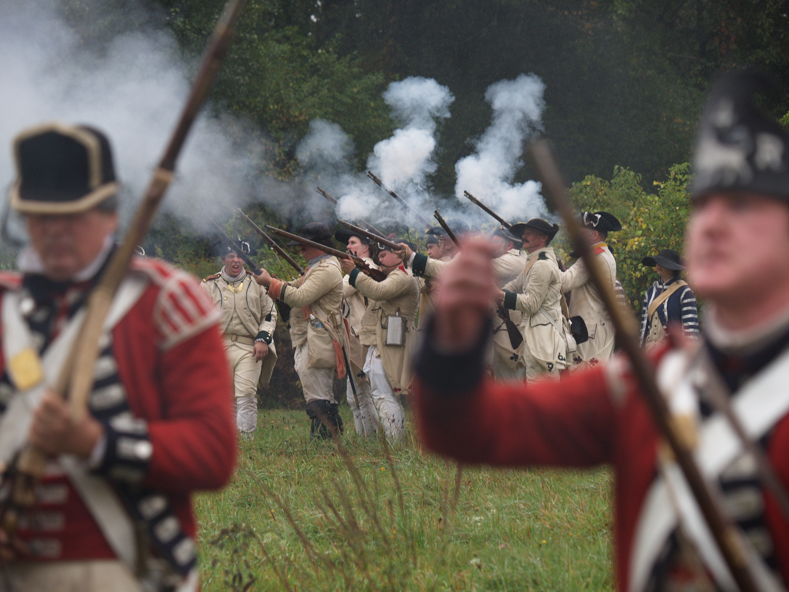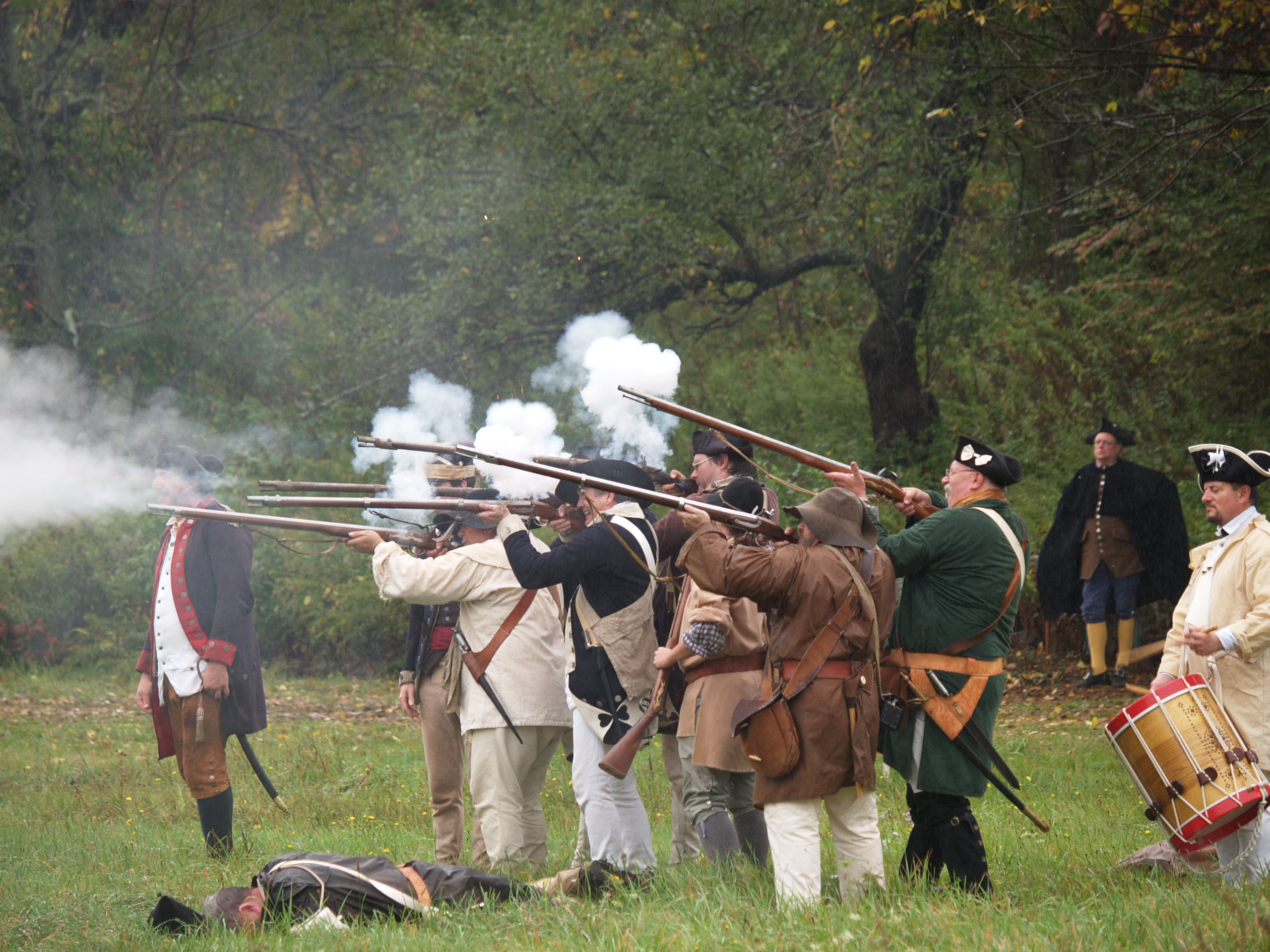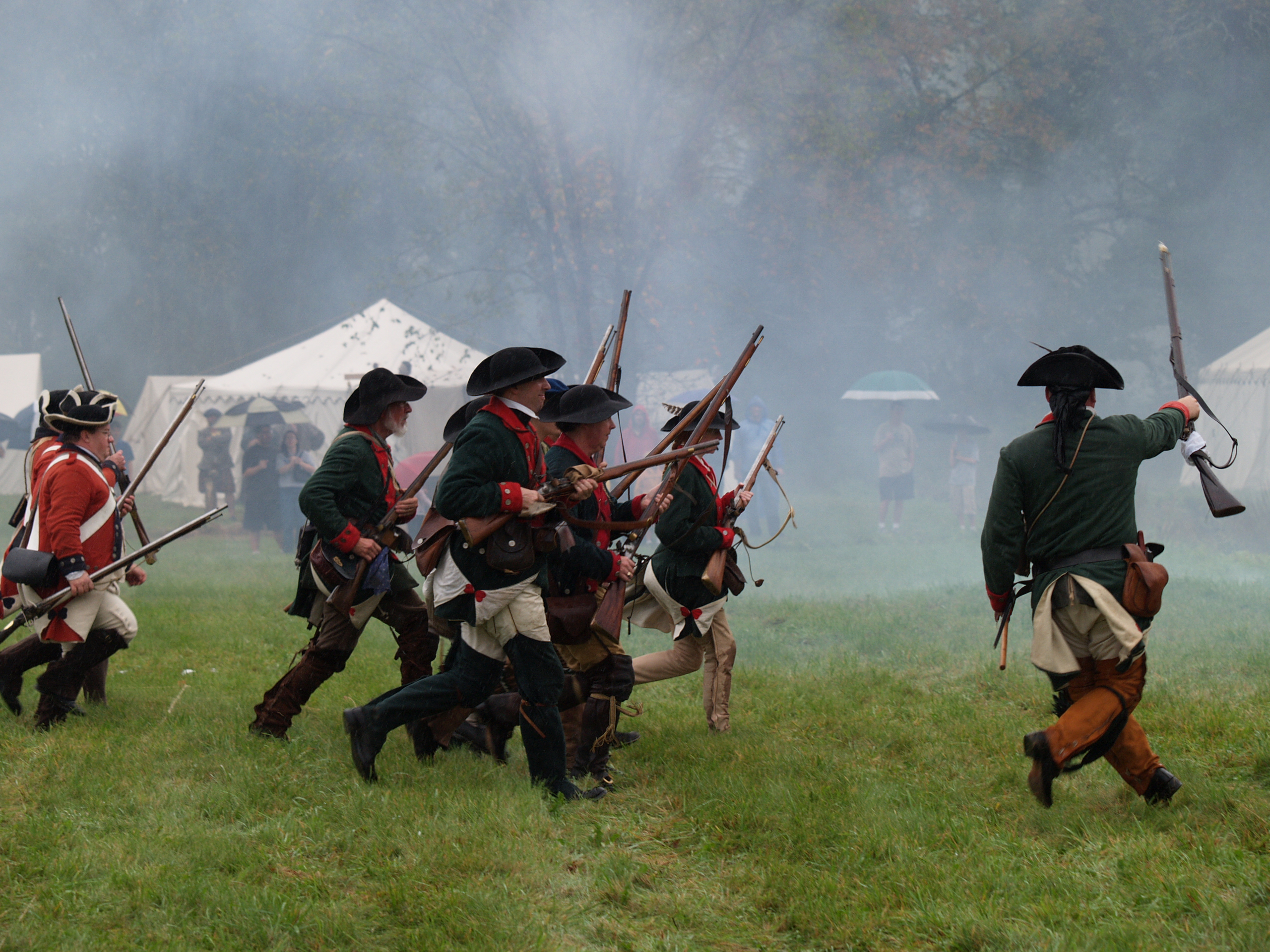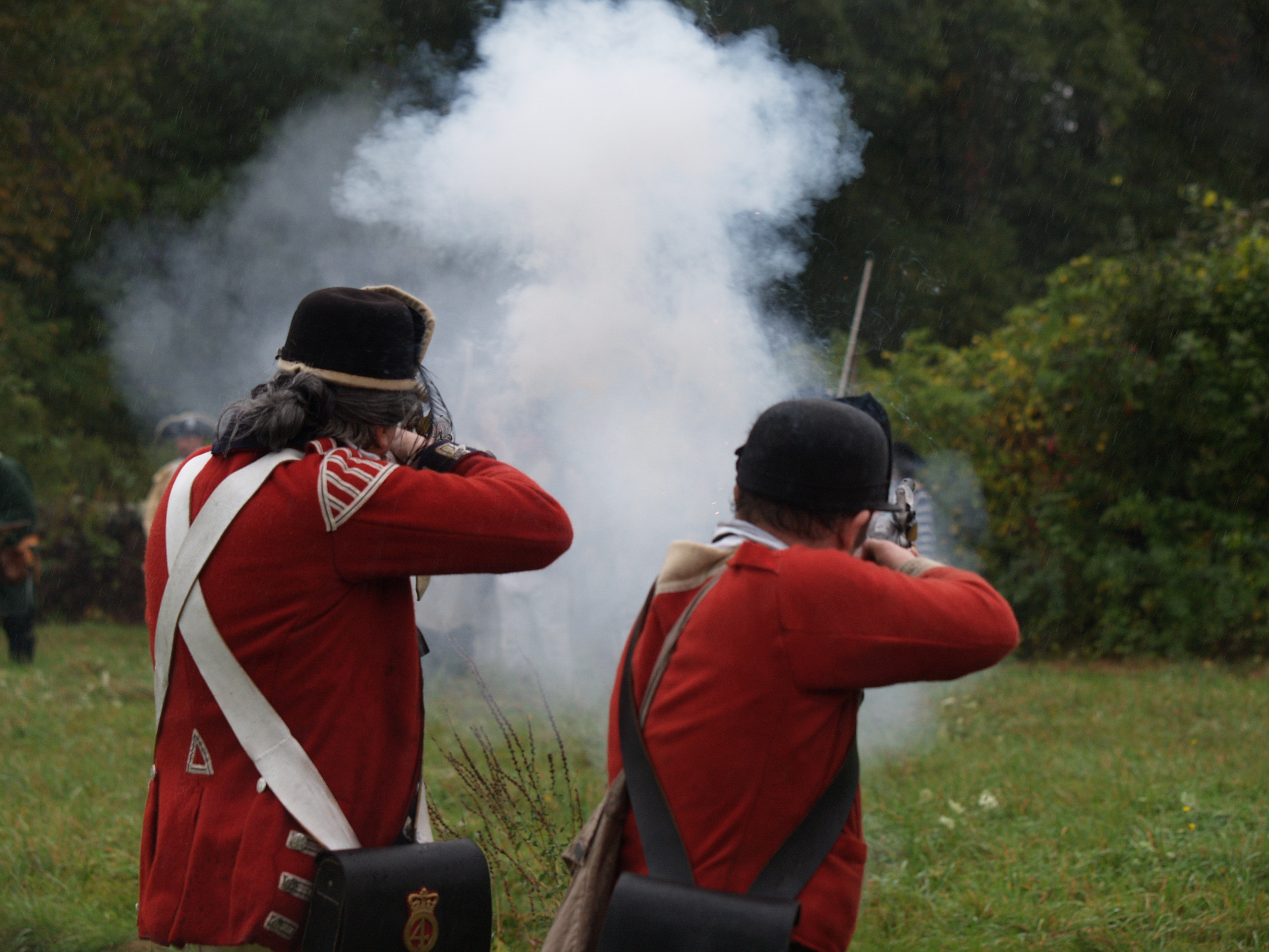 Picture #6: Redcoats #5 Small: 640x503, 65,070 bytes (64K), (html file) Large: 2560x1920, 3,186,342 bytes (3.0M), (html file) Copyright, Michael Meissner 2005, All rights reserved Olympus E-1 camera with Olympus 50-200mm f/2.8-3.5 lens f/3.2, ISO 200, 1/250 sec, 79.0mm, auto mode, SHQ, matrix metering, +2 sharpening 35mm equivalent focal length 158.0mm Taken by Michael Meissner on October 08, 2005 15:19:43 Last modified on October 08, 2005 at 18:24 |
