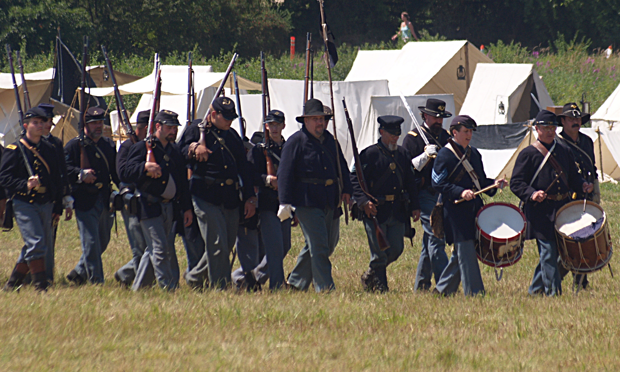 Picture #7: Union soldiers #2 Small: 760x388, 108,301 bytes (106K), (html file) Large: 2280x1095, 3,279,124 bytes (3.1M), (html file) Copyright, Michael Meissner 2005, All rights reserved Olympus E-1 camera with Sigma 55-200mm f/4.0-5.6 lens f/6.3, ISO 100, 1/320 sec, 69.0mm, auto mode, SHQ, matrix metering, +2 sharpening 35mm equivalent focal length 138.0mm Taken by Michael Meissner on July 30, 2005 14:08:10 Last modified on July 30, 2005 at 22:49 |