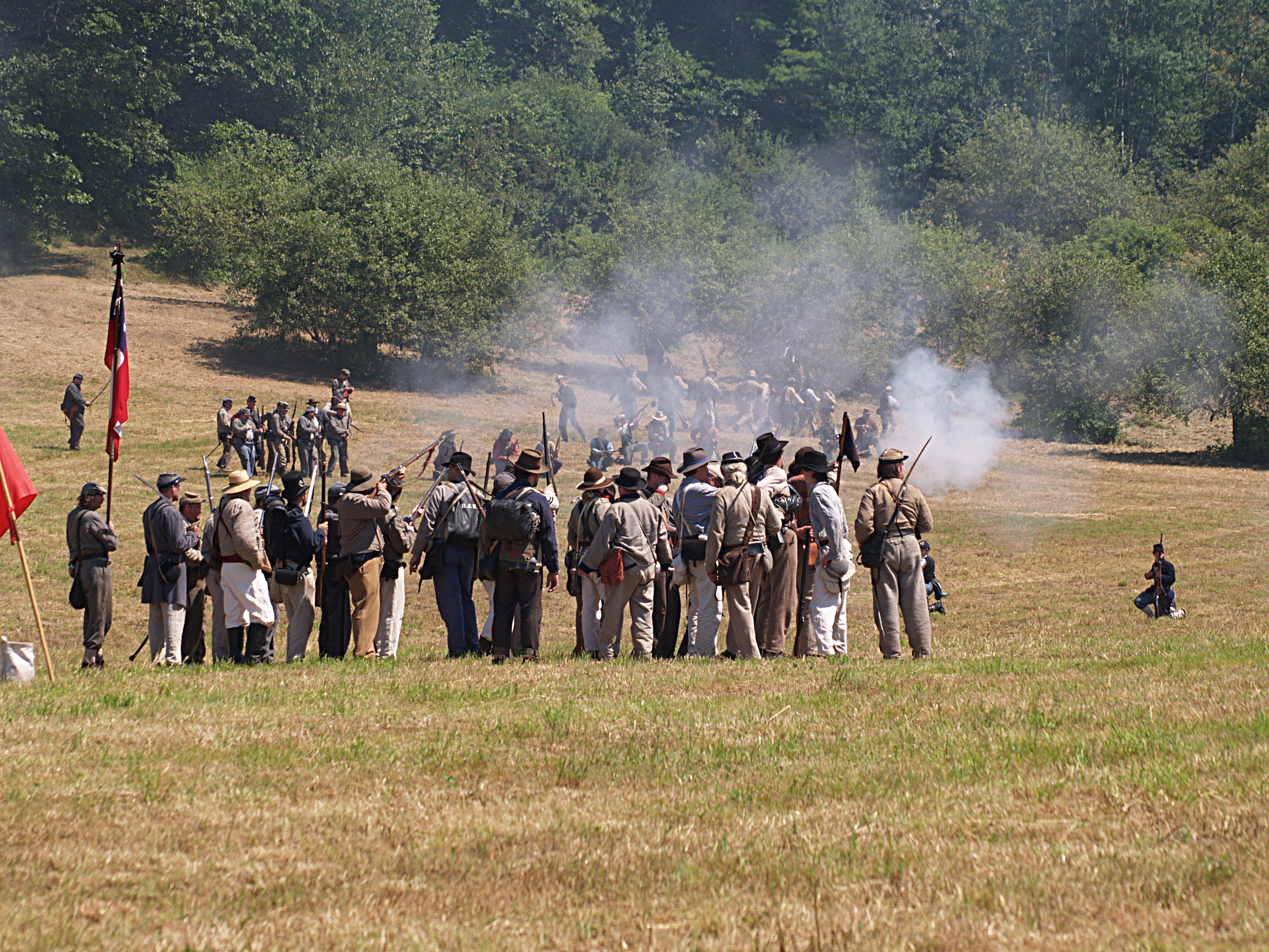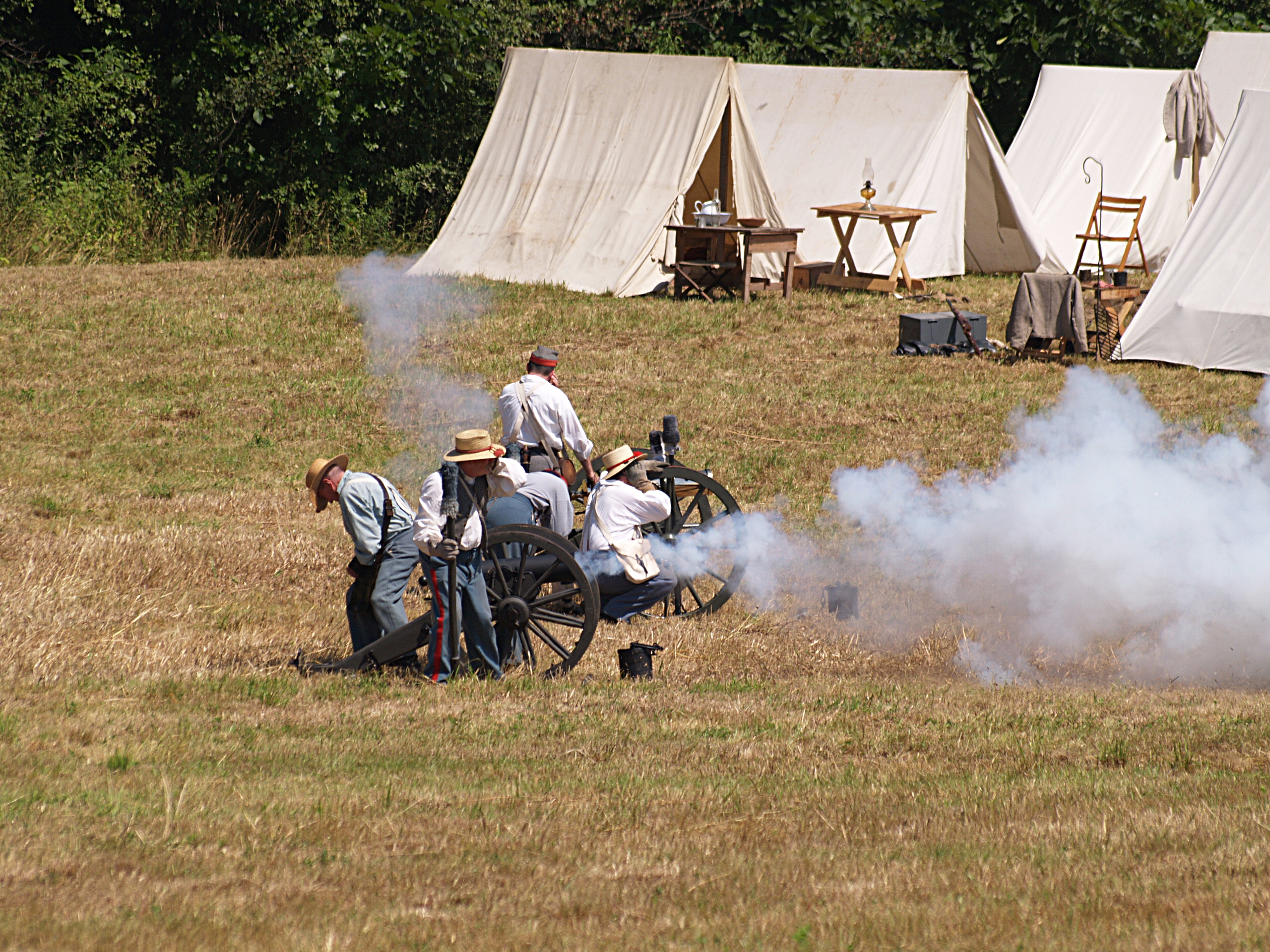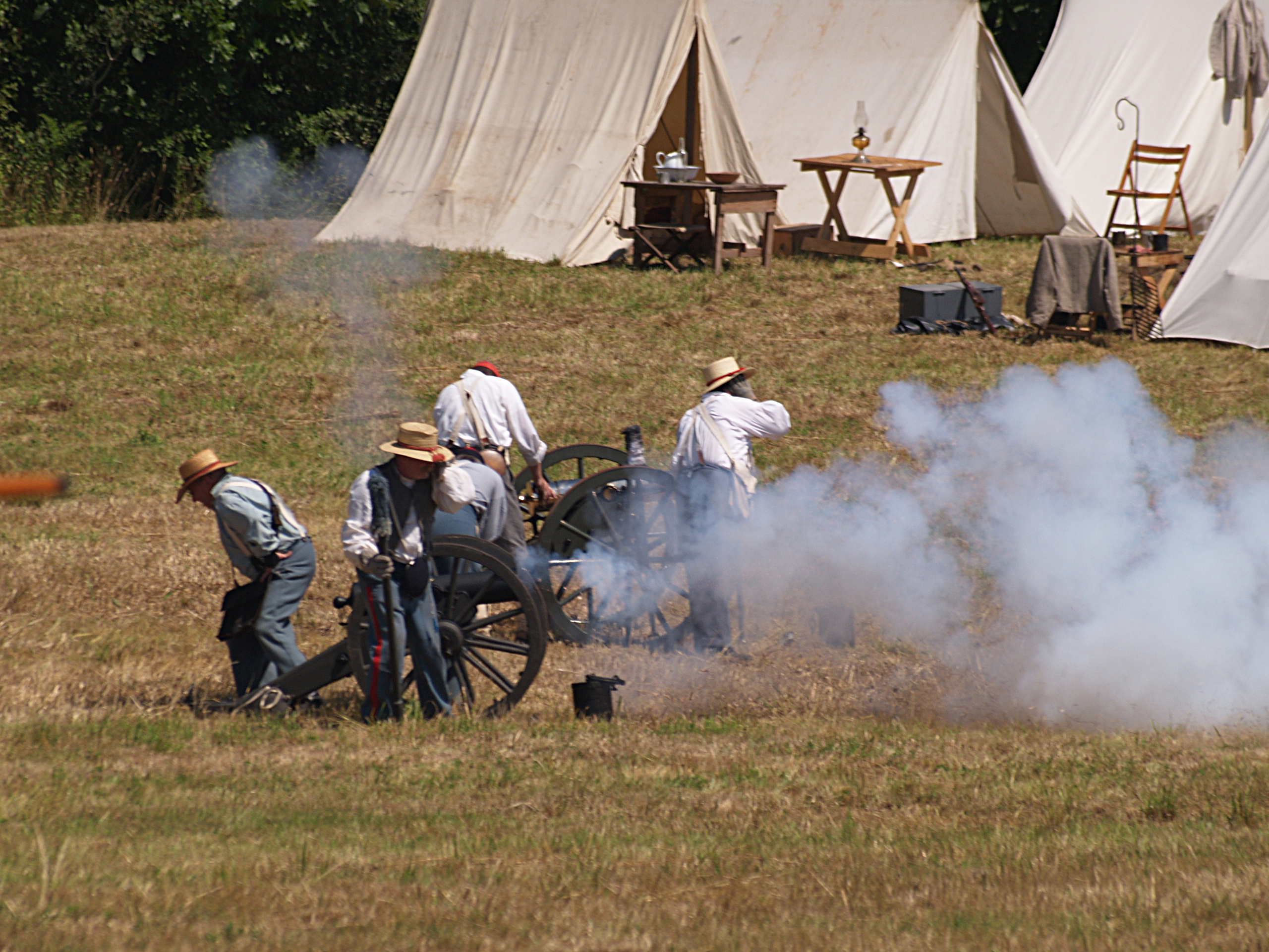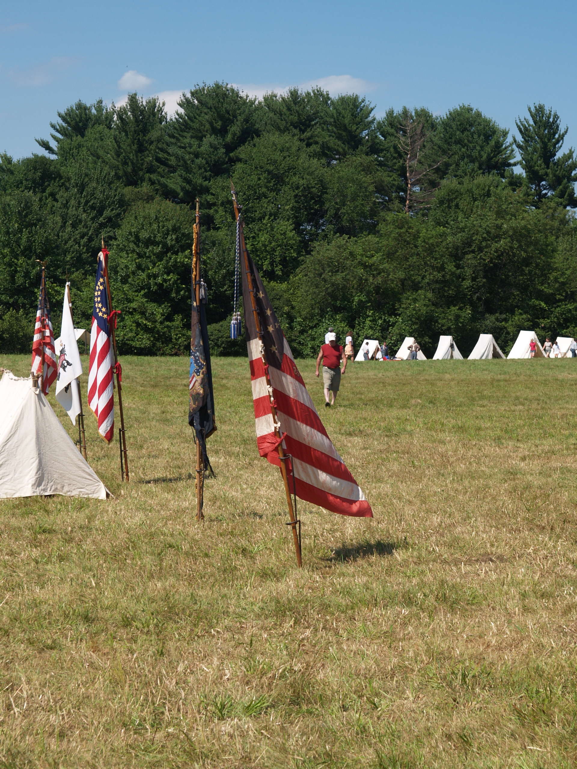 Picture #15: The union army gets into position #2 Small: 640x503, 114,505 bytes (112K), (html file) Large: 2560x1920, 5,451,166 bytes (5.2M), (html file) Copyright, Michael Meissner 2005, All rights reserved Olympus E-1 camera with Sigma 55-200mm f/4.0-5.6 lens f/5.6, ISO 100, 1/320 sec, 82.0mm, auto mode, SHQ, matrix metering, +2 sharpening 35mm equivalent focal length 164.0mm Taken by Michael Meissner on July 30, 2005 14:12:19 Last modified on July 30, 2005 at 22:49 |