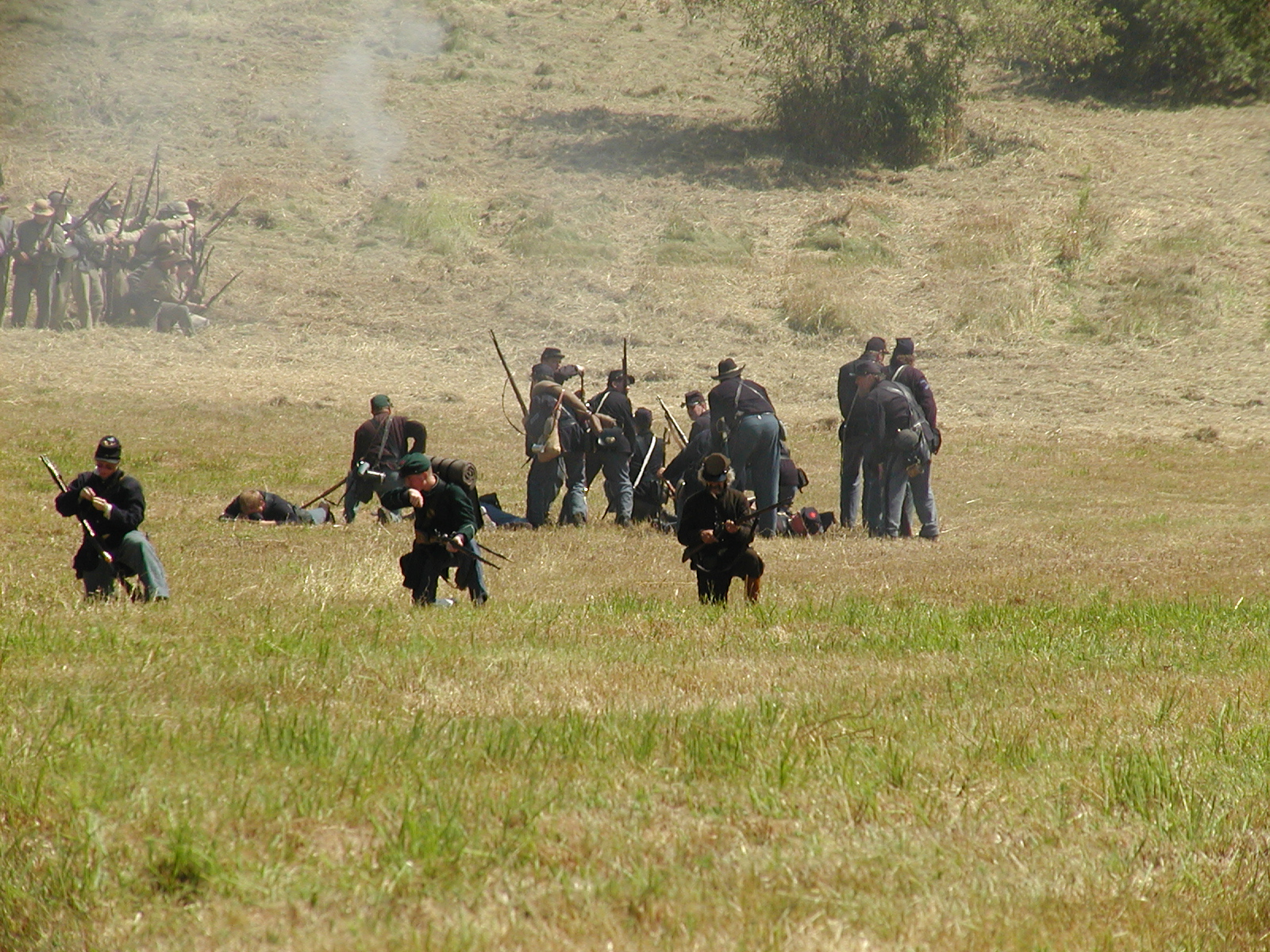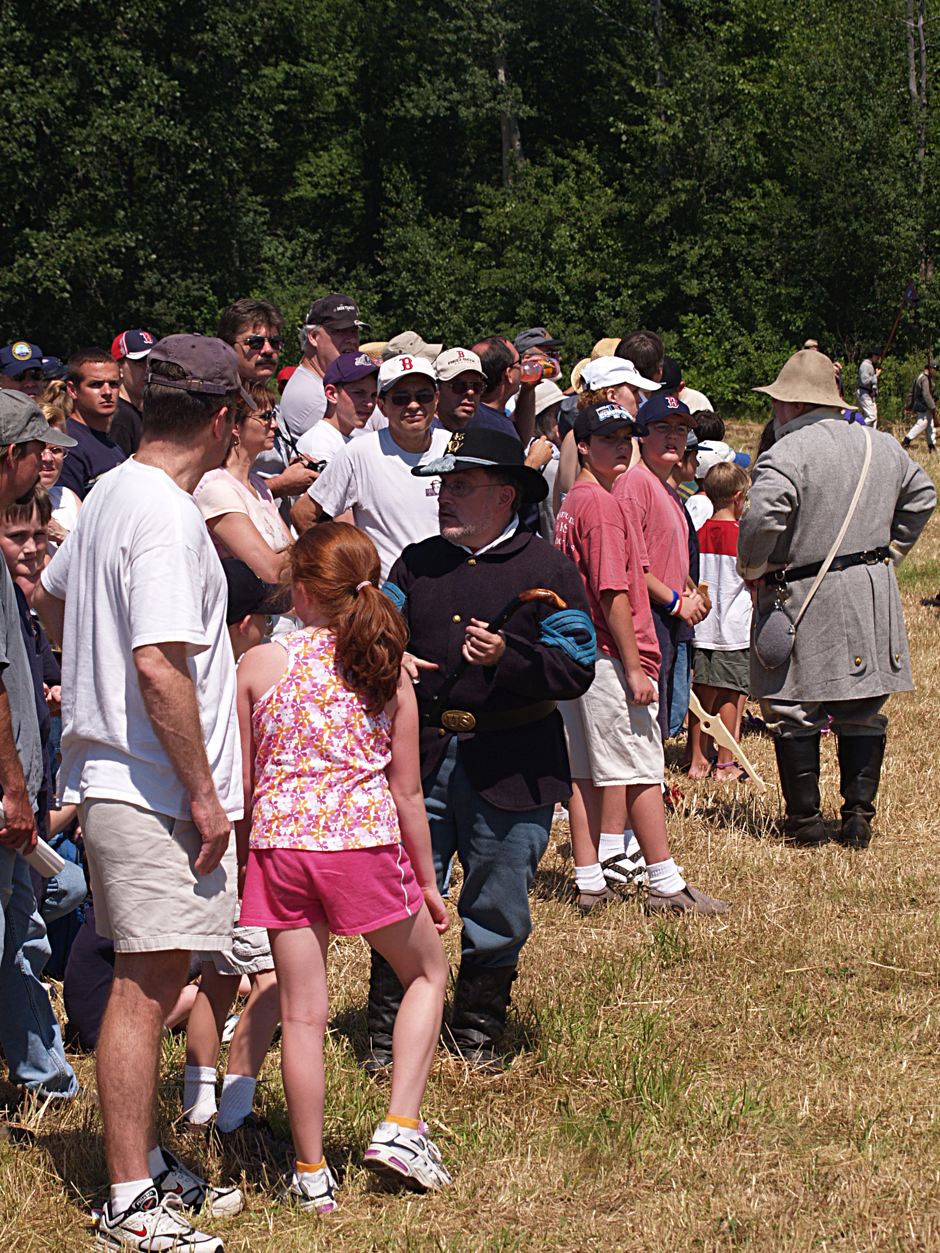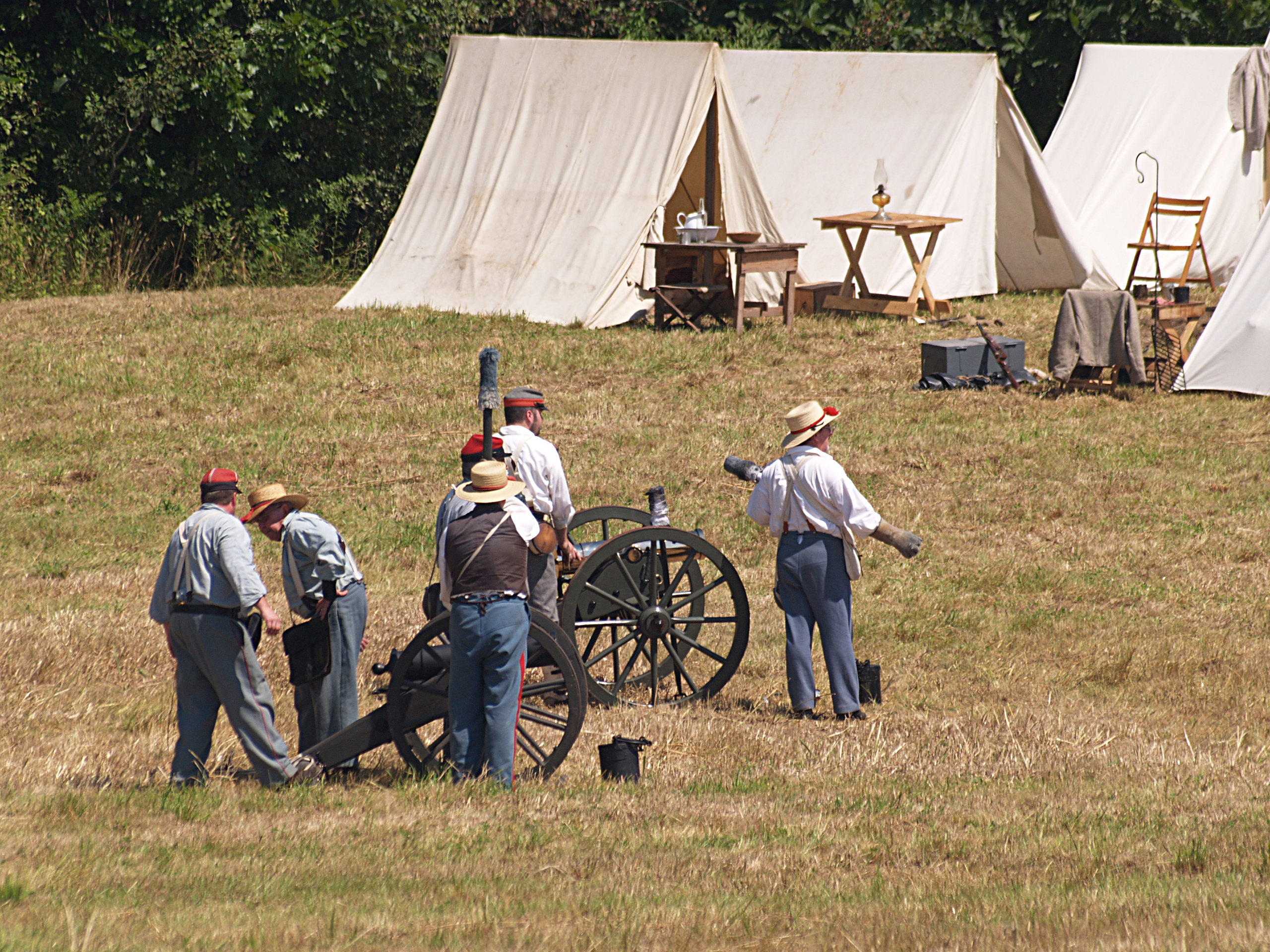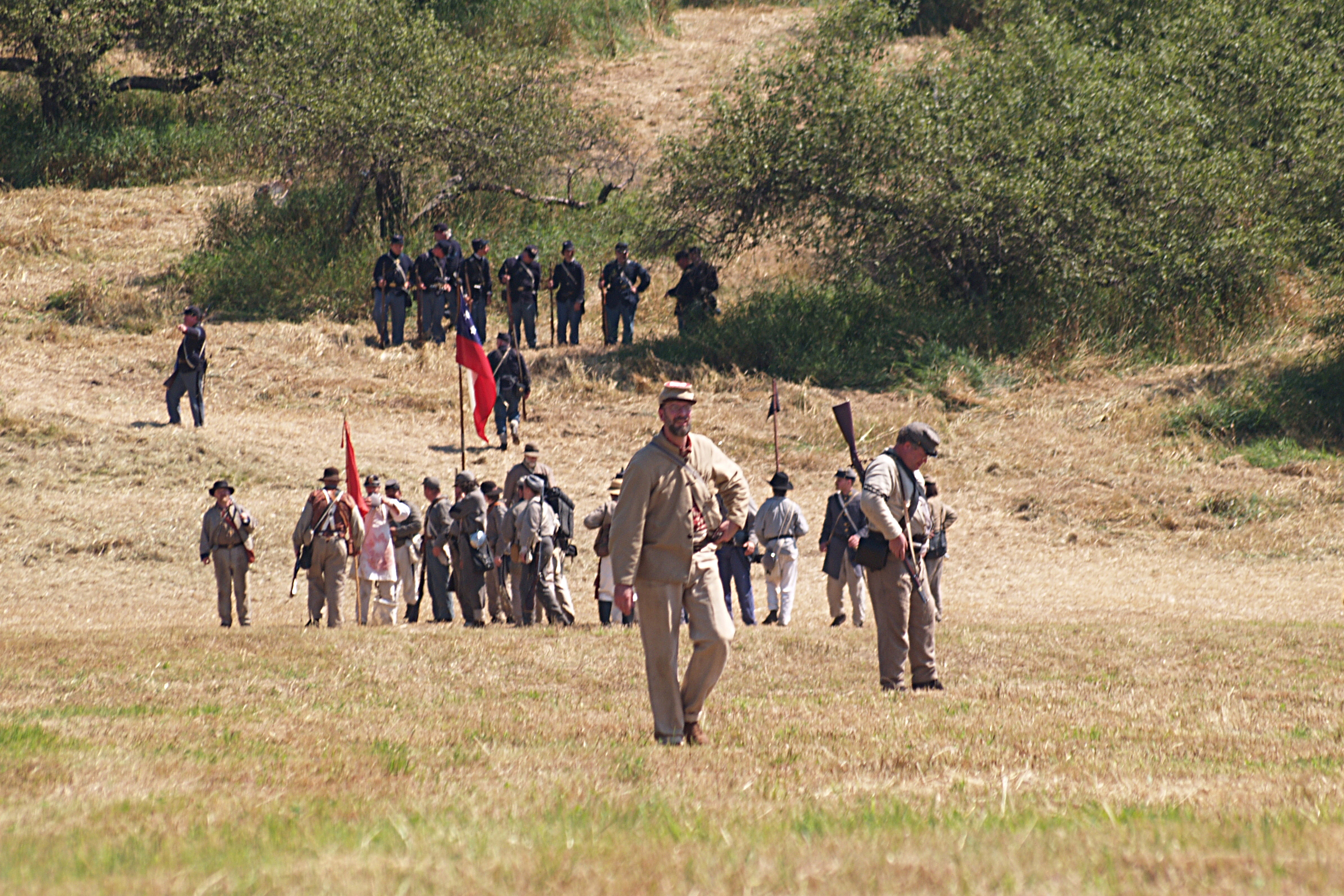 Picture #15: The union army gets into position #2 Small: 640x503, 114,505 bytes (112K), (html file) Large: 2560x1920, 5,451,166 bytes (5.2M), (html file) Copyright, Michael Meissner 2005, All rights reserved Olympus E-1 camera with Sigma 55-200mm f/4.0-5.6 lens f/5.6, ISO 100, 1/320 sec, 82.0mm, auto mode, SHQ, matrix metering, +2 sharpening 35mm equivalent focal length 164.0mm Taken by Michael Meissner on July 30, 2005 14:12:19 Last modified on July 30, 2005 at 22:49 |