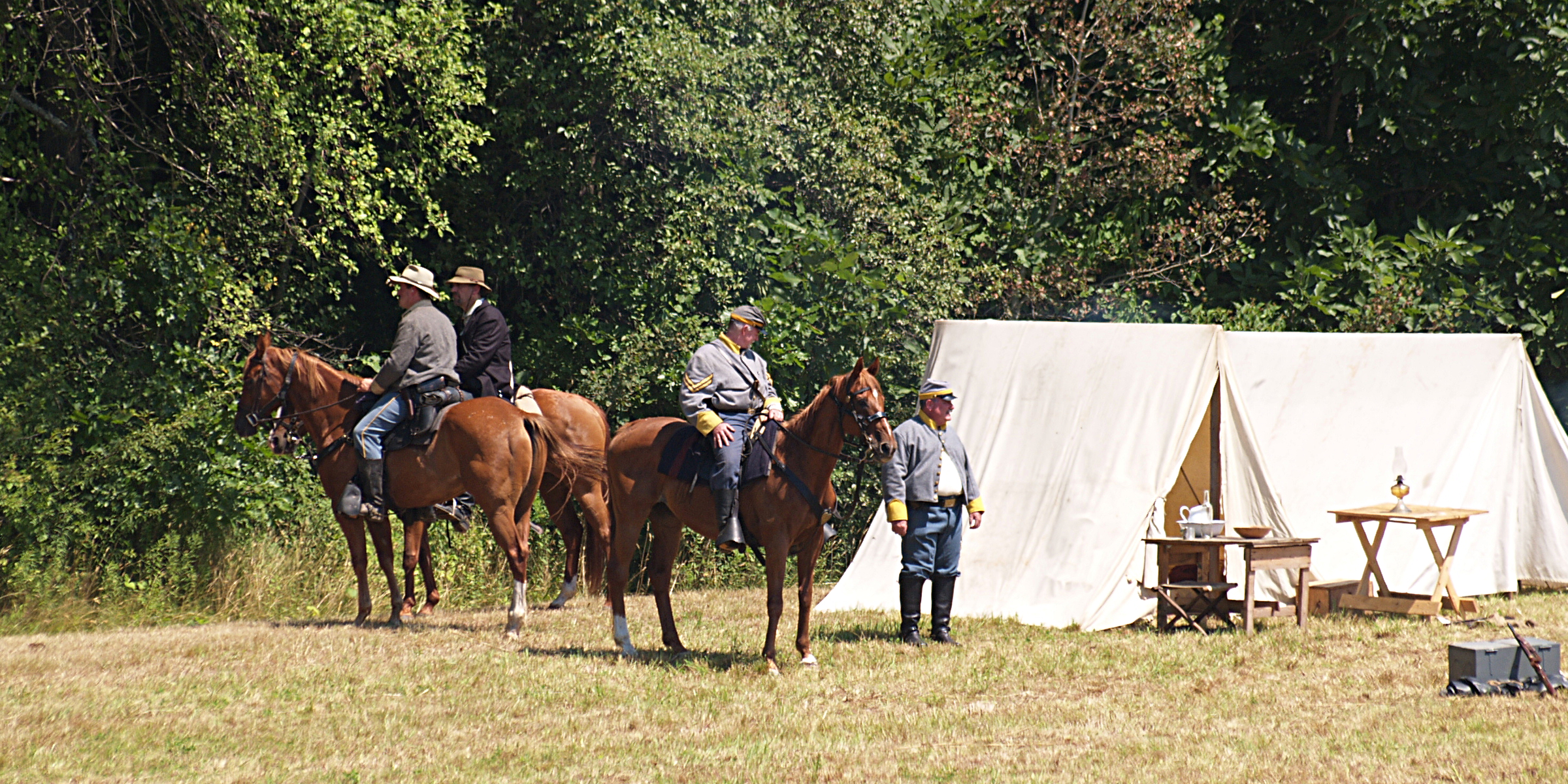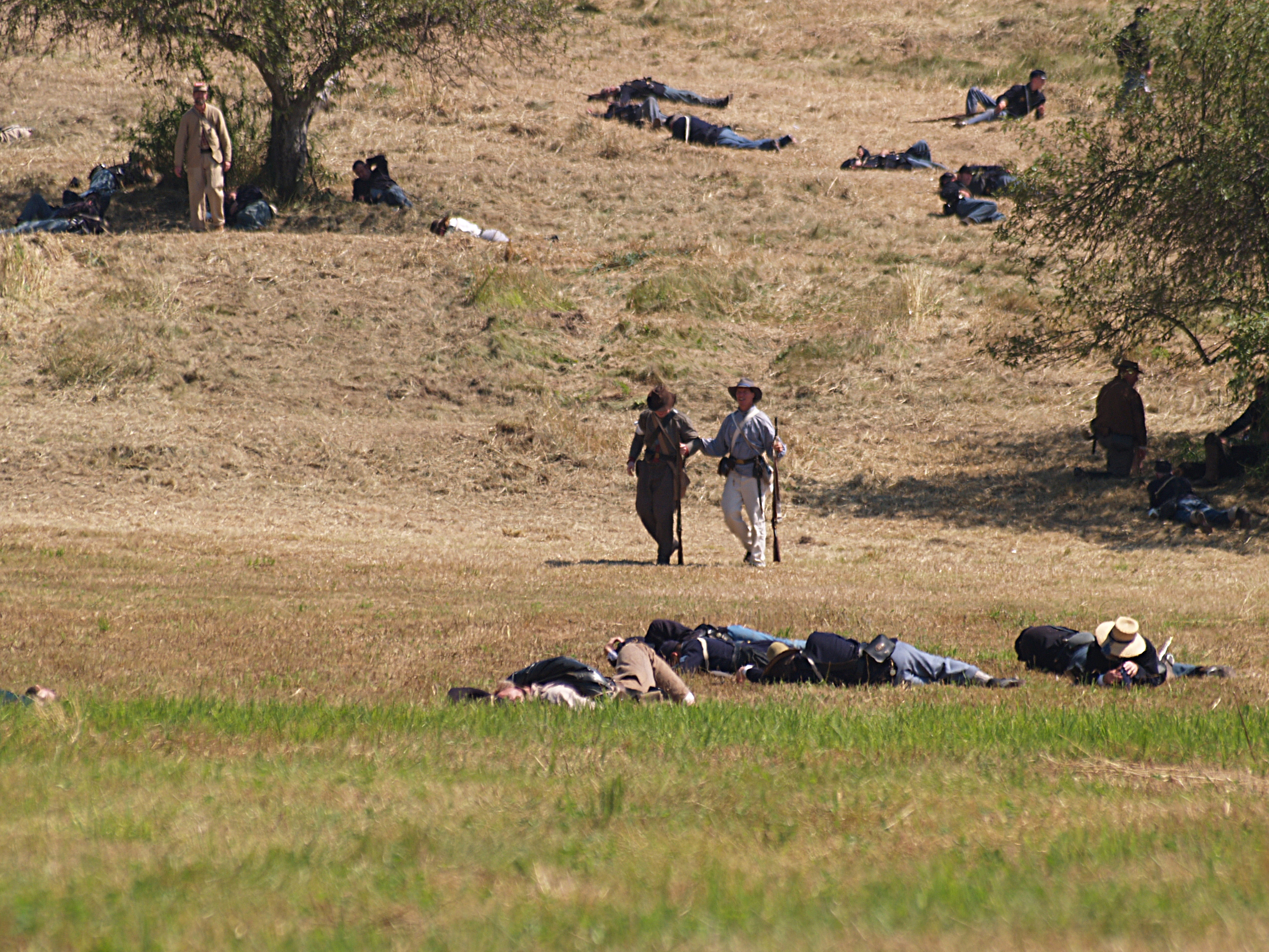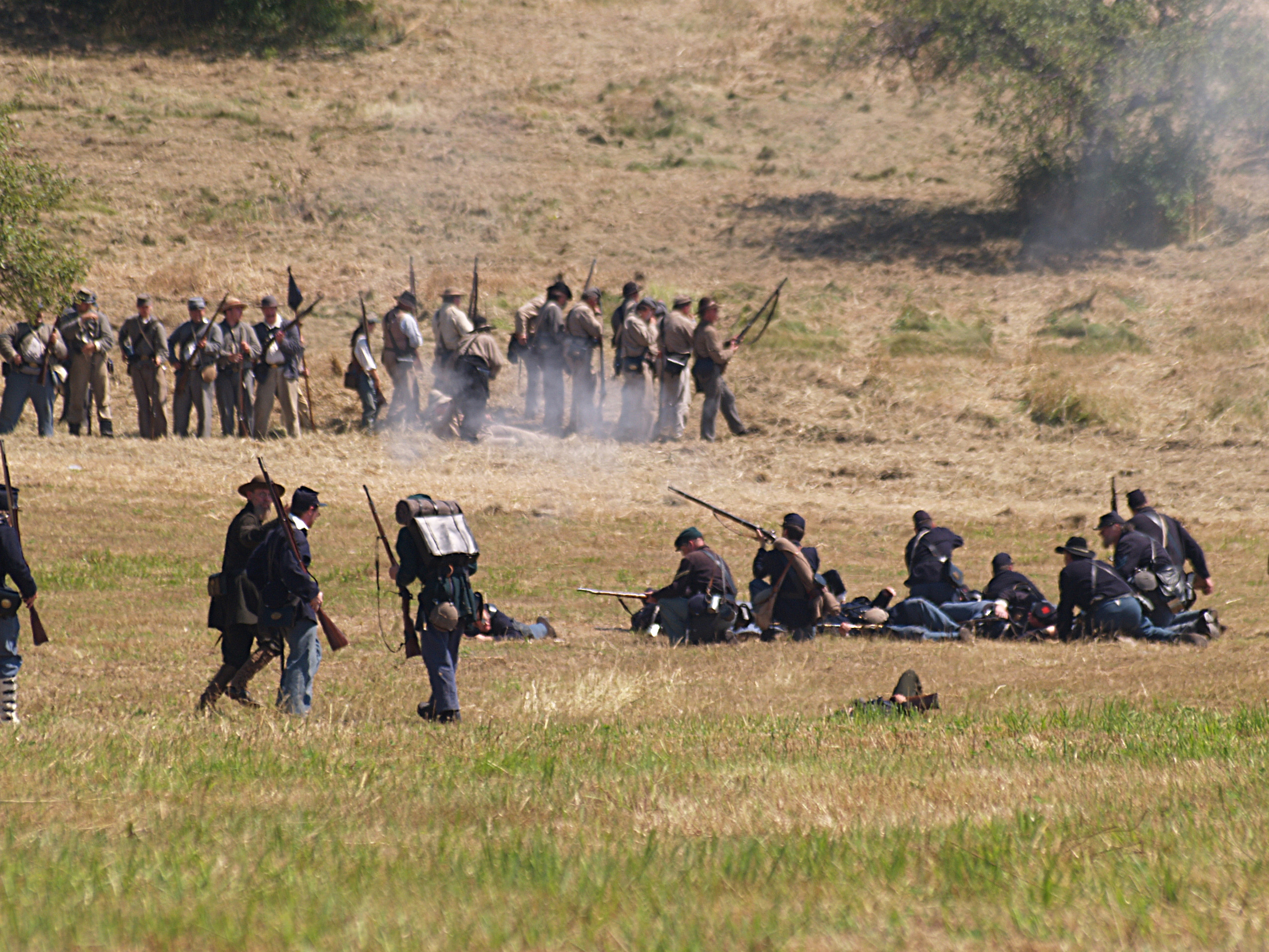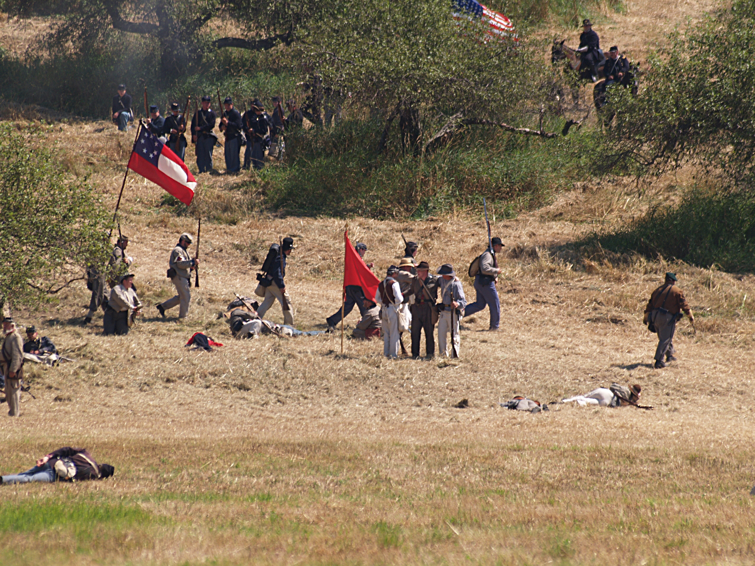 Picture #15: The union army gets into position #2 Small: 640x503, 114,505 bytes (112K), (html file) Large: 2560x1920, 5,451,166 bytes (5.2M), (html file) Copyright, Michael Meissner 2005, All rights reserved Olympus E-1 camera with Sigma 55-200mm f/4.0-5.6 lens f/5.6, ISO 100, 1/320 sec, 82.0mm, auto mode, SHQ, matrix metering, +2 sharpening 35mm equivalent focal length 164.0mm Taken by Michael Meissner on July 30, 2005 14:12:19 Last modified on July 30, 2005 at 22:49 |