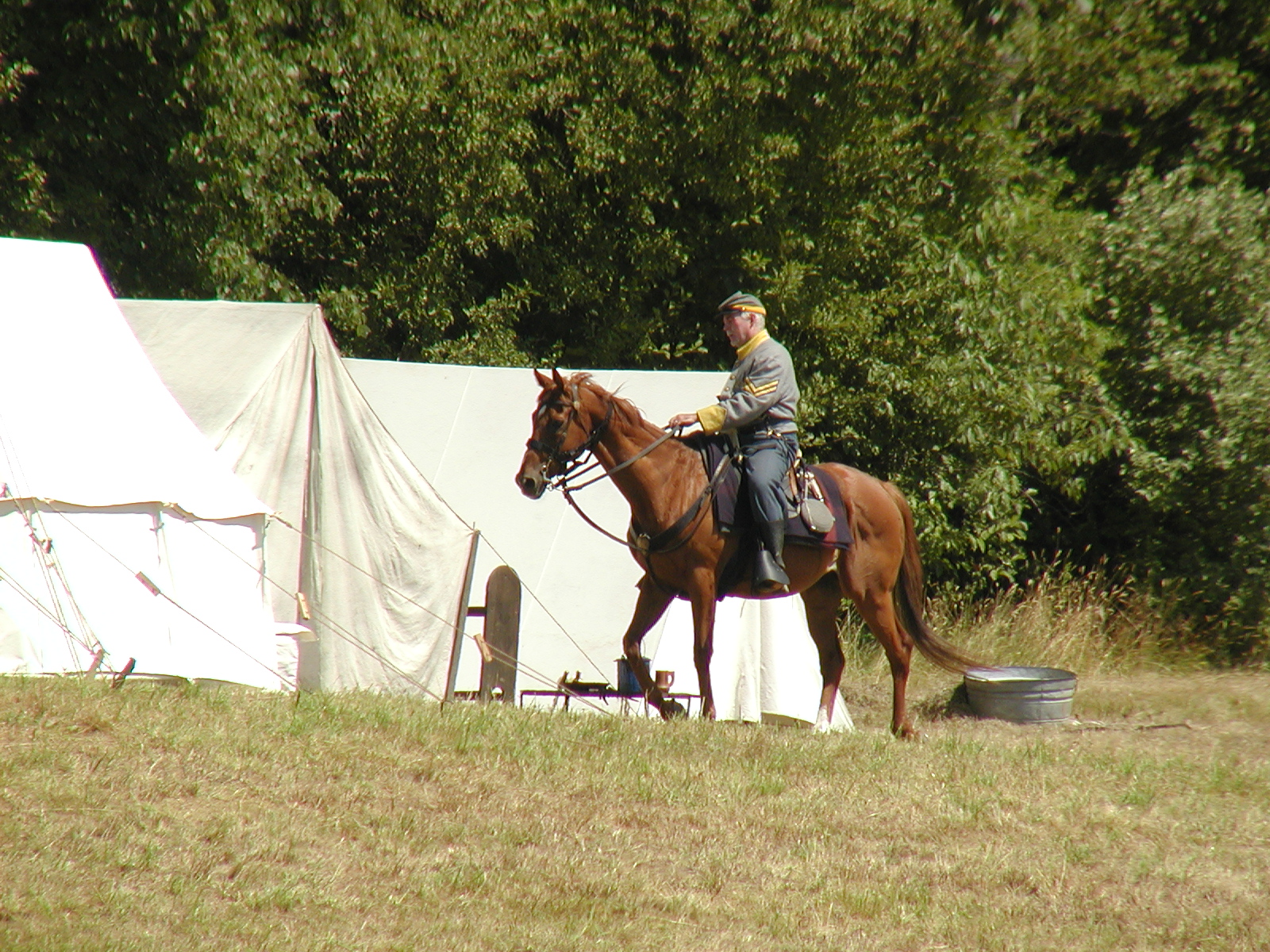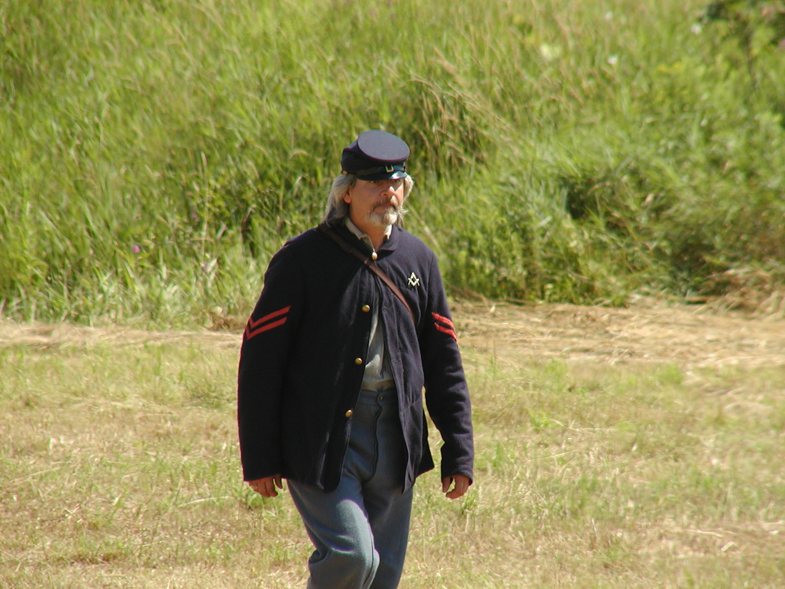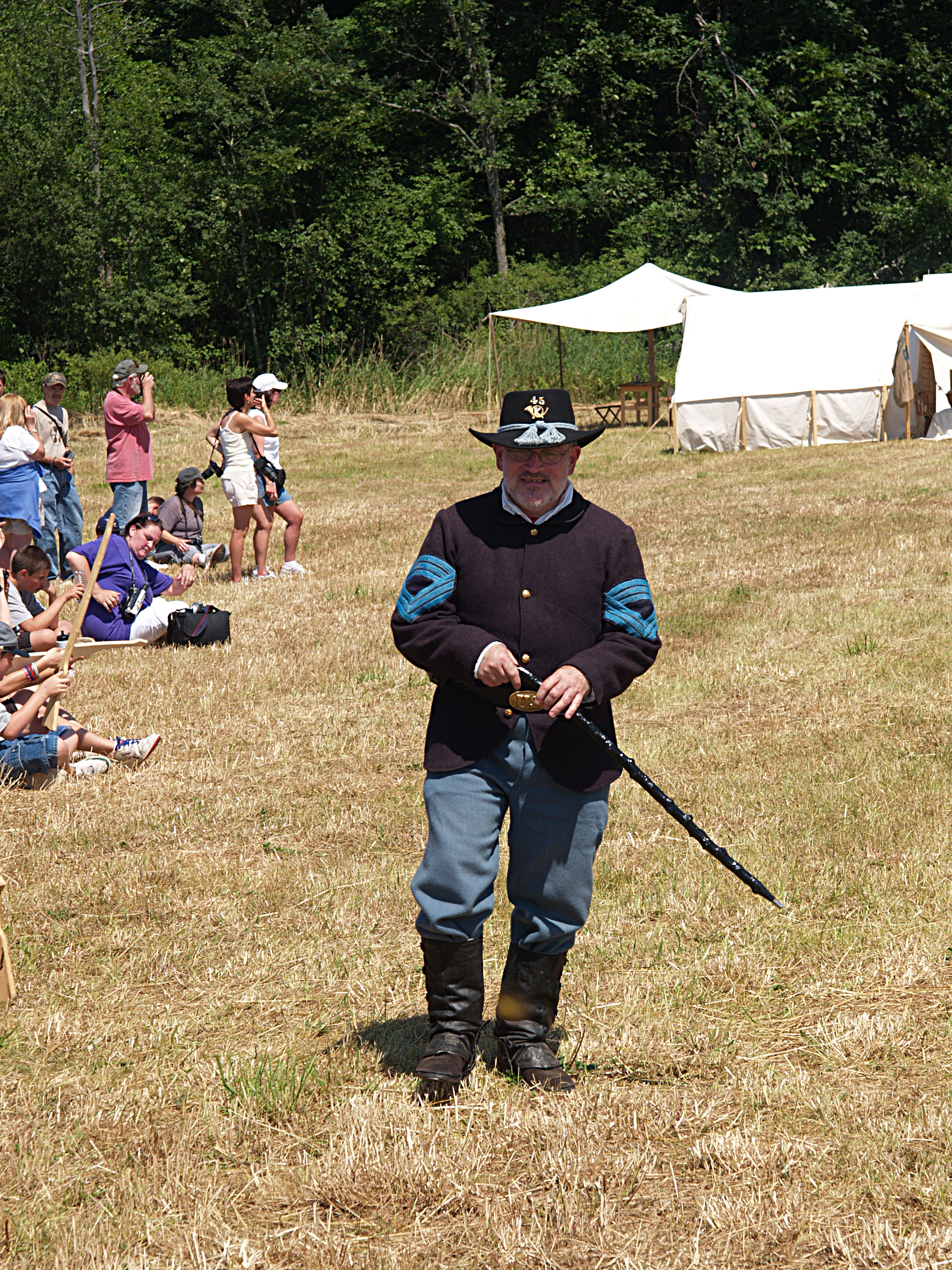 Picture #5: Confederate general reenactor Small: 533x846, 142,330 bytes (139K), (html file) Large: 1600x2400, 5,134,663 bytes (4.9M), (html file) Copyright, Michael Meissner 2005, All rights reserved Olympus E-1 camera with Sigma 55-200mm f/4.0-5.6 lens f/8.0, ISO 100, 1/500 sec, 72.0mm, auto mode, SHQ, matrix metering, +2 sharpening 35mm equivalent focal length 144.0mm Taken by Michael Meissner on July 30, 2005 14:06:35 Last modified on July 30, 2005 at 22:49 |