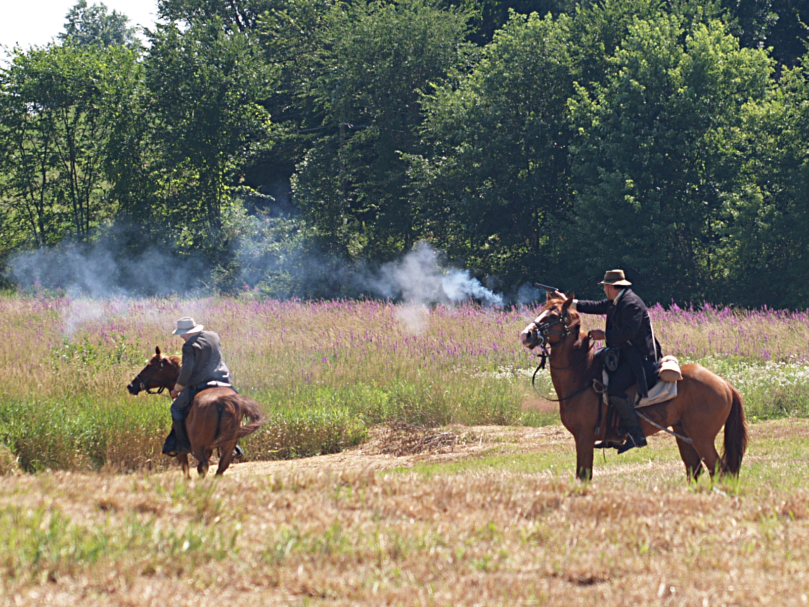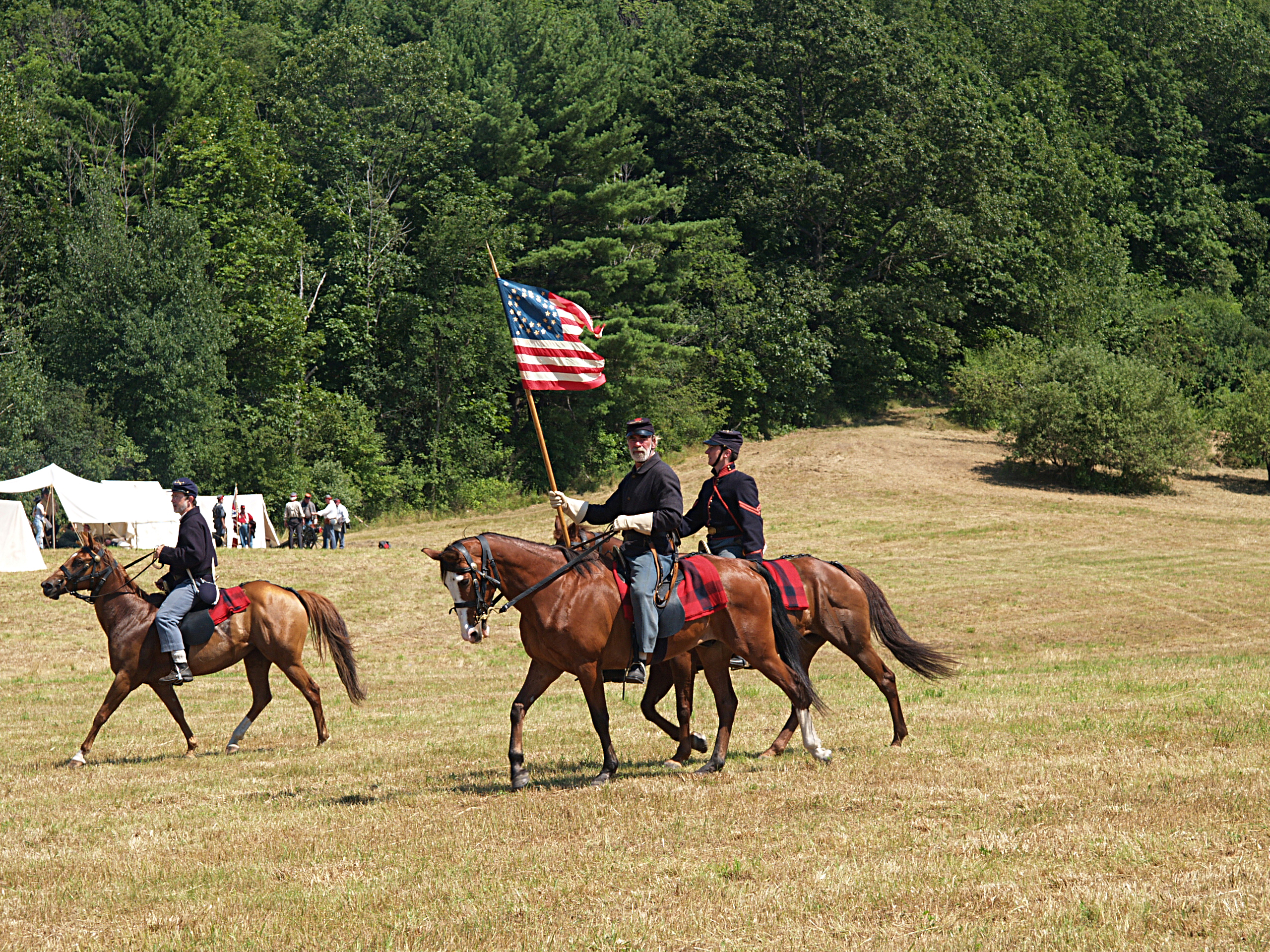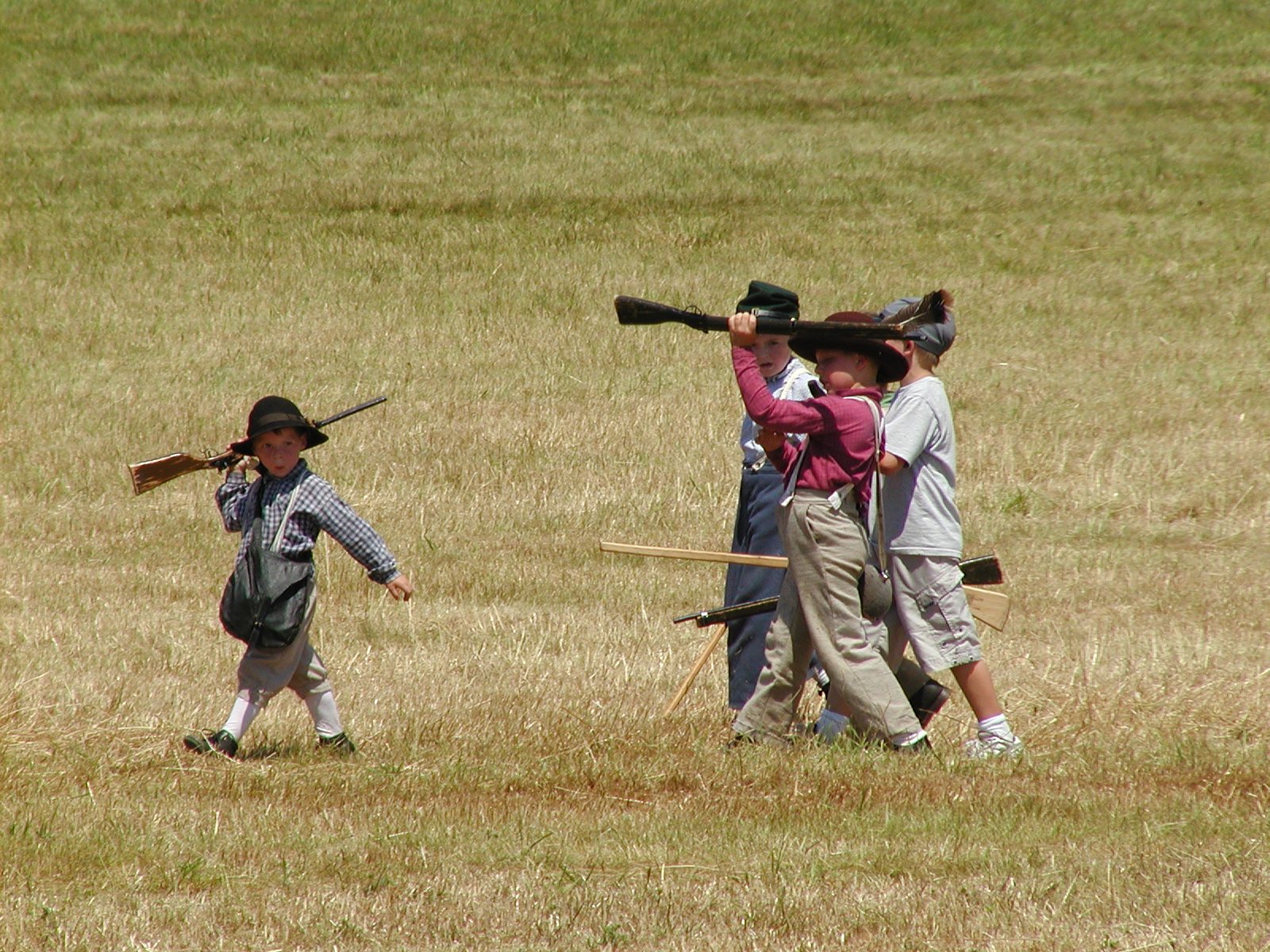 Picture #60: Confederate soldiers chasing the Union Small: 800x623, 177,221 bytes (174K), (html file) Large: 1600x1200, 2,074,191 bytes (2.0M), (html file) Copyright, Michael Meissner 2005, All rights reserved Olympus C-2100UZ camera f/4.5, ISO 100, 1/500 sec, 35.7mm, auto mode, SHQ, cloudy, matrix metering 35mm equivalent focal length 337.0mm Extra equipment used: Tcon-17 1.7x teleconverter Taken by Michael Meissner on July 30, 2005 14:36:04 Last modified on August 06, 2005 at 15:48 |