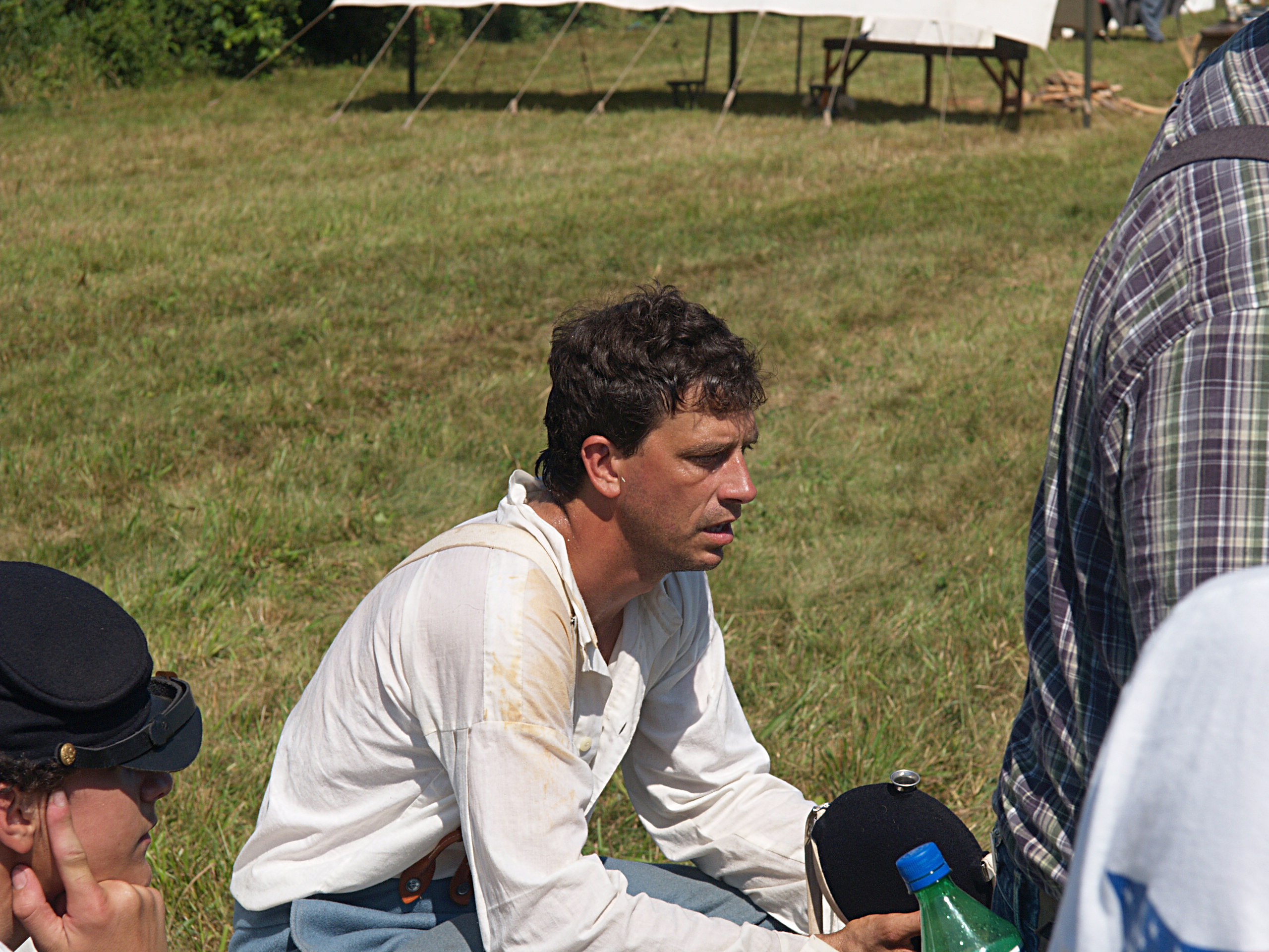 Picture #2: Reenactor who set the scene for the audience Small: 480x686, 102,582 bytes (101K), (html file) Large: 1920x2560, 5,298,834 bytes (5.1M), (html file) Copyright, Michael Meissner 2005, All rights reserved Olympus E-1 camera with Sigma 55-200mm f/4.0-5.6 lens f/5.6, ISO 100, 1/250 sec, 55.0mm, auto mode, SHQ, matrix metering, +2 sharpening 35mm equivalent focal length 110.0mm Taken by Michael Meissner on July 30, 2005 13:55:01 Last modified on July 30, 2005 at 22:48 |