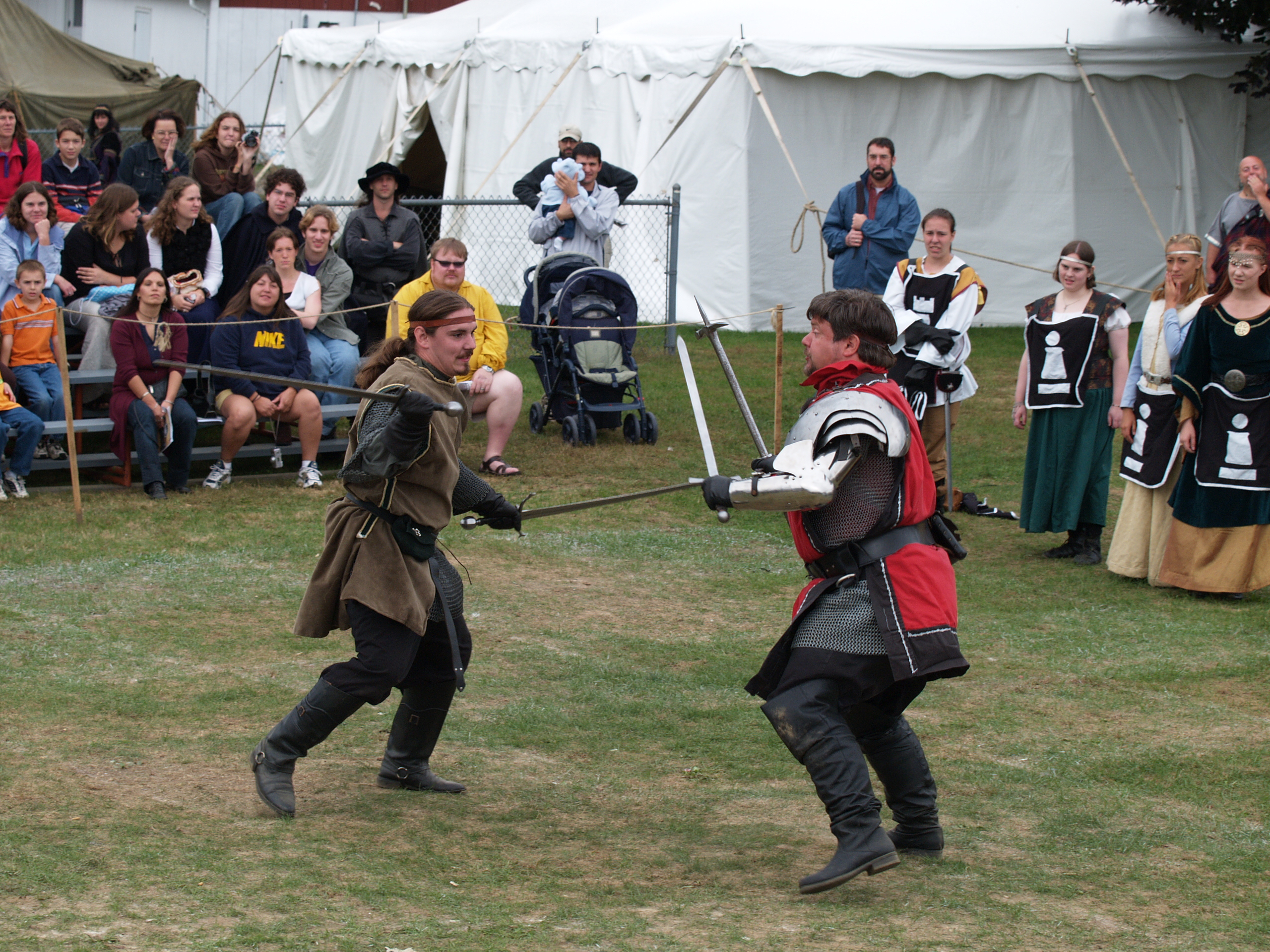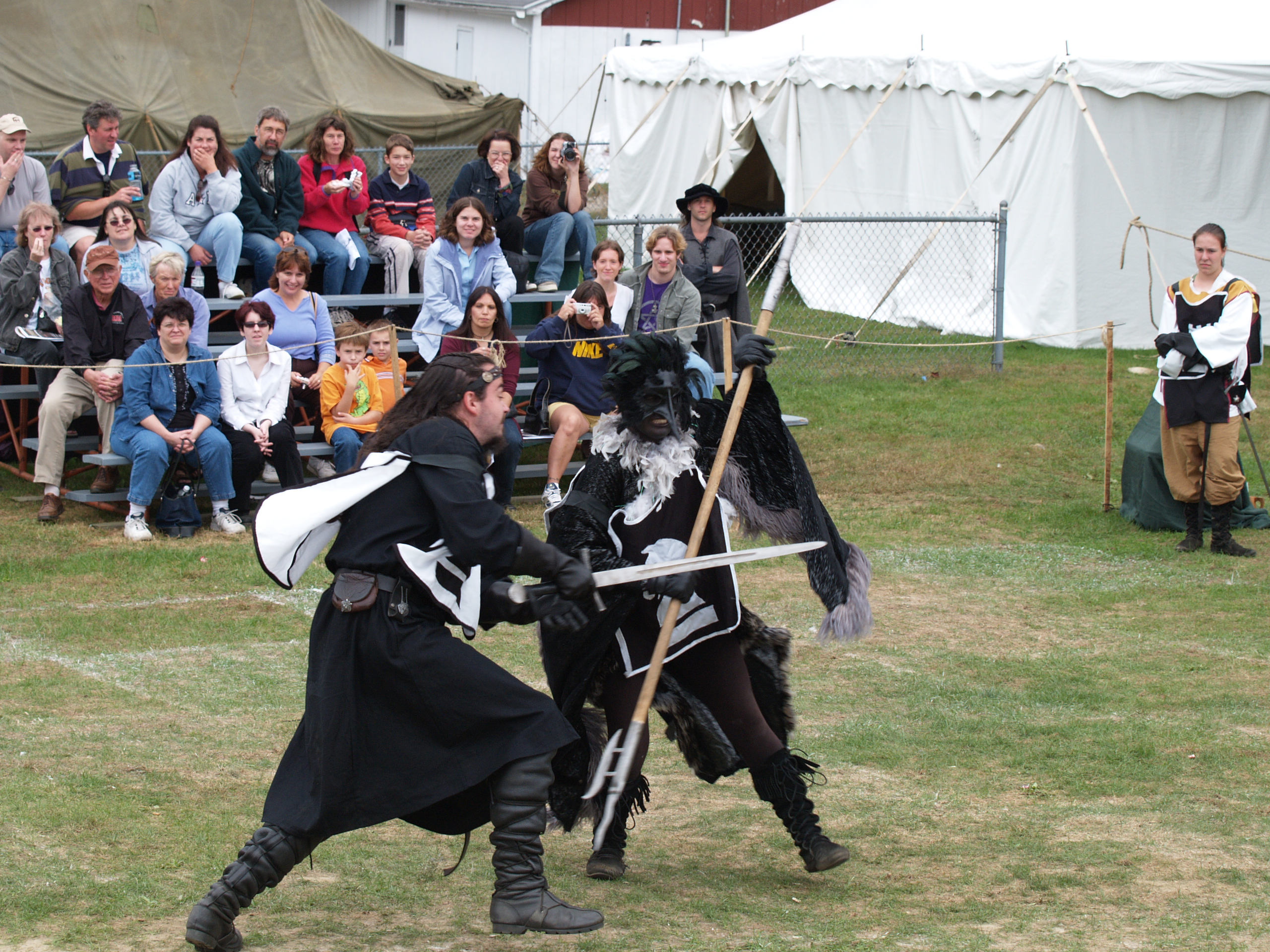 Picture #2: Feudal Feud #2 Small: 640x503, 73,000 bytes (72K), (html file) Large: 2560x1920, 3,003,557 bytes (2.9M), (html file) Copyright, Michael Meissner 2005, All rights reserved Olympus E-1 camera with Olympus 14-54mm f/2.8-3.5 lens f/4.0, ISO 200, 1/160 sec, 54.0mm, auto mode, SHQ, matrix metering, +2 sharpening 35mm equivalent focal length 108.0mm Taken by Michael Meissner on September 25, 2005 12:41:29 Last modified on September 25, 2005 at 21:36 |
