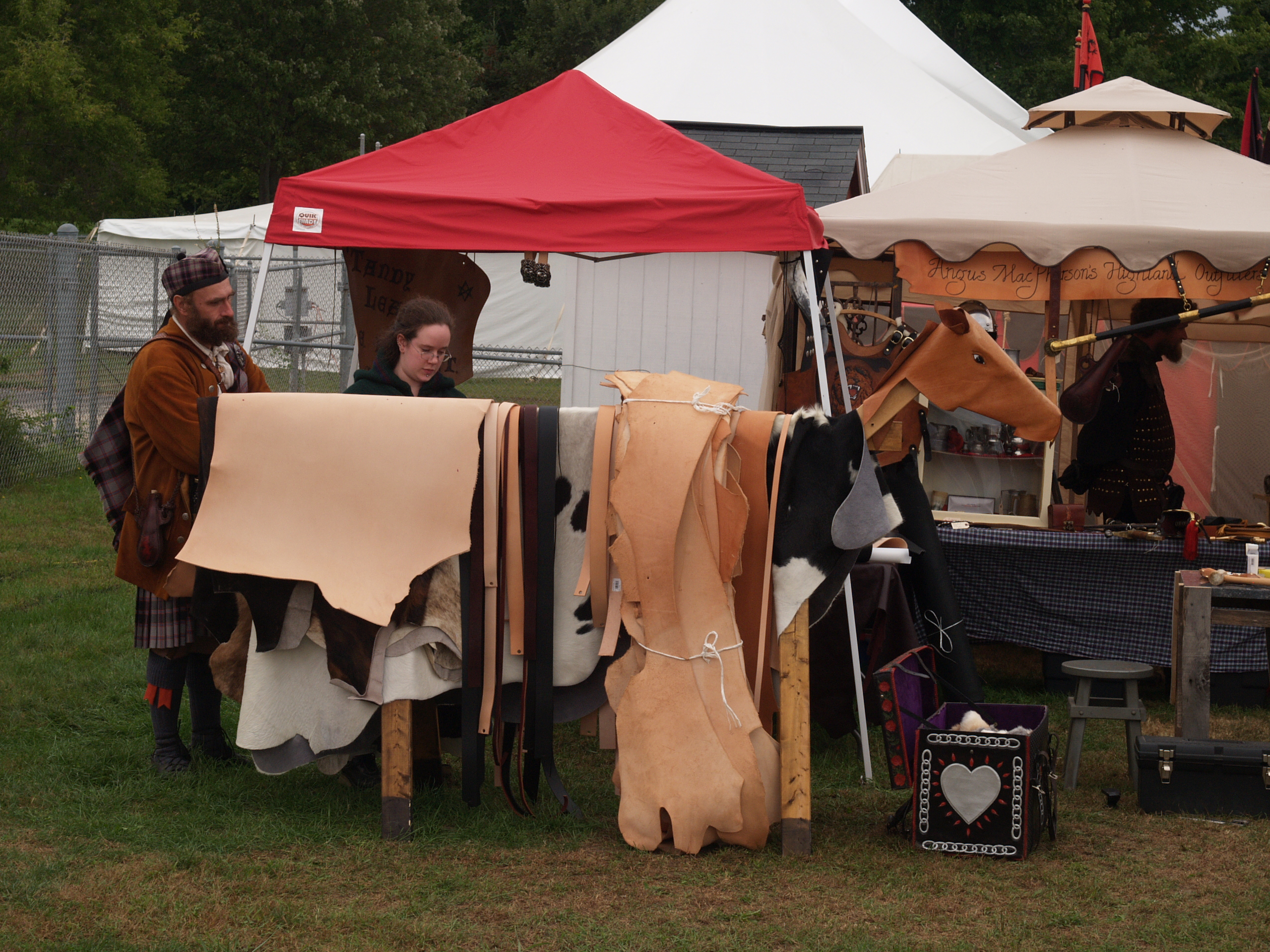 Picture #8: Leathers for sale Small: 640x503, 76,299 bytes (75K), (html file) Large: 2560x1920, 3,379,566 bytes (3.2M), (html file) Copyright, Michael Meissner 2005, All rights reserved Olympus E-1 camera with Olympus 14-54mm f/2.8-3.5 lens f/6.3, ISO 200, 1/320 sec, 37.0mm, auto mode, SHQ, matrix metering, +2 sharpening 35mm equivalent focal length 74.0mm Taken by Michael Meissner on September 25, 2005 14:00:34 Last modified on September 25, 2005 at 21:40 |