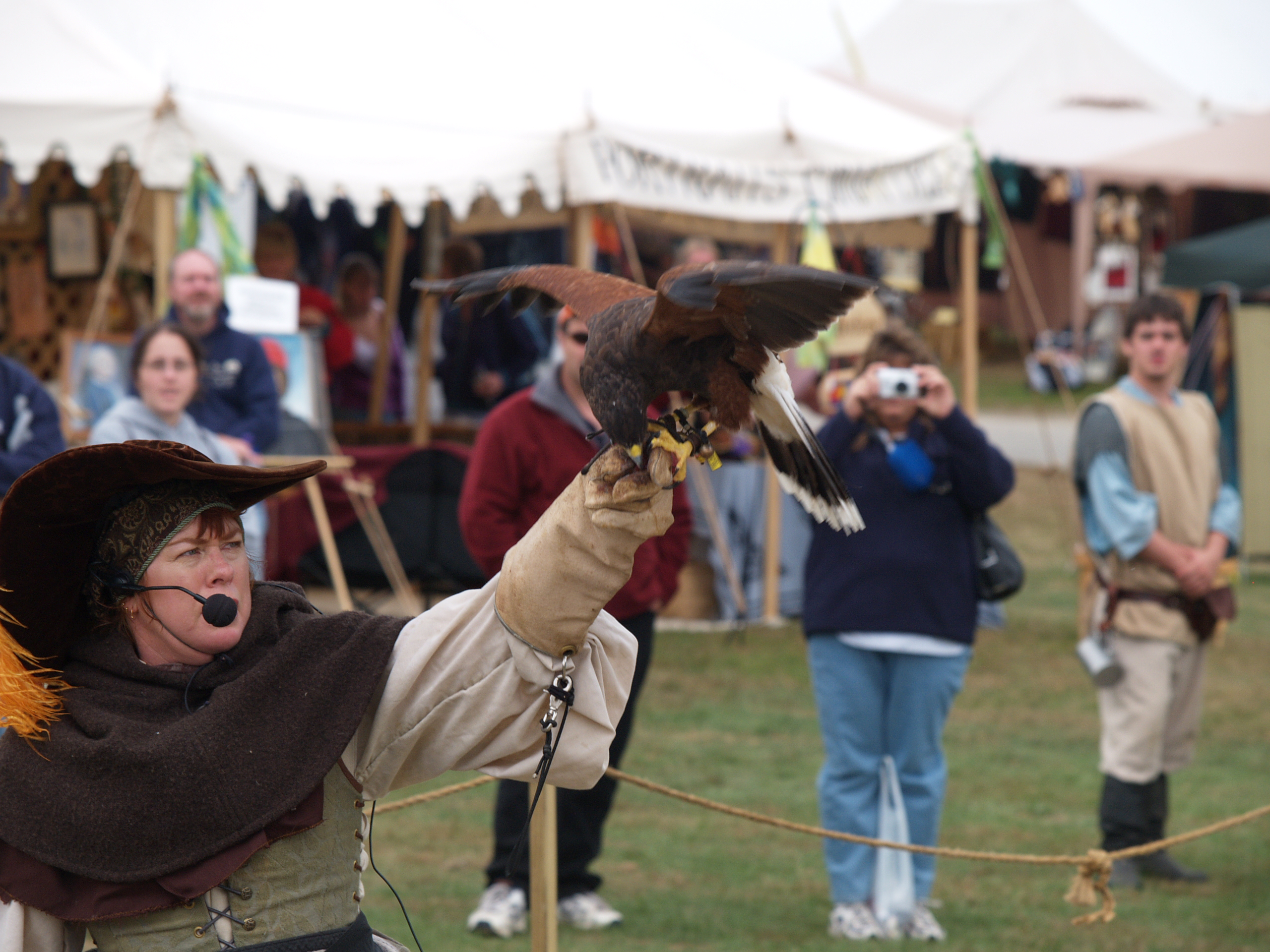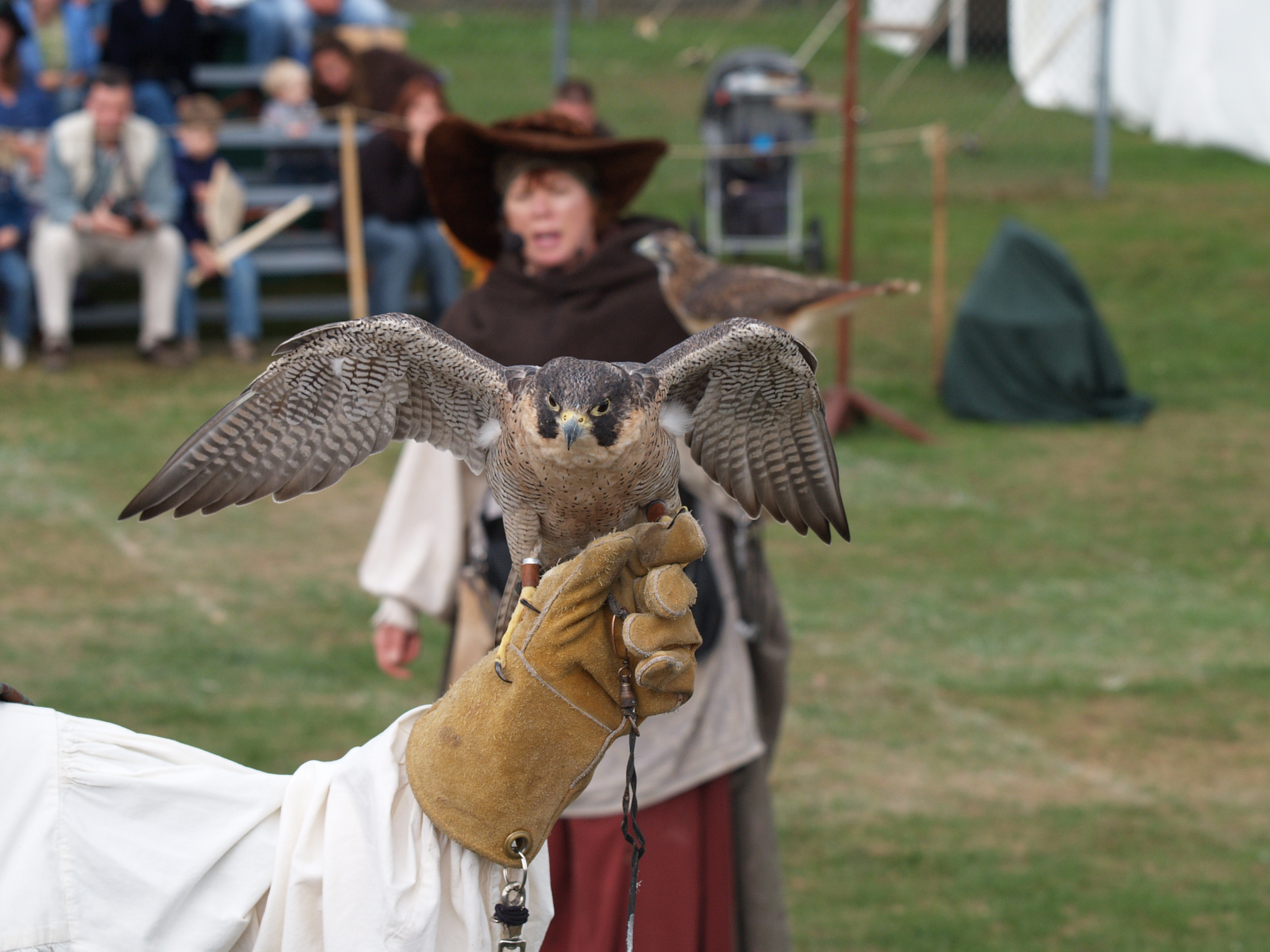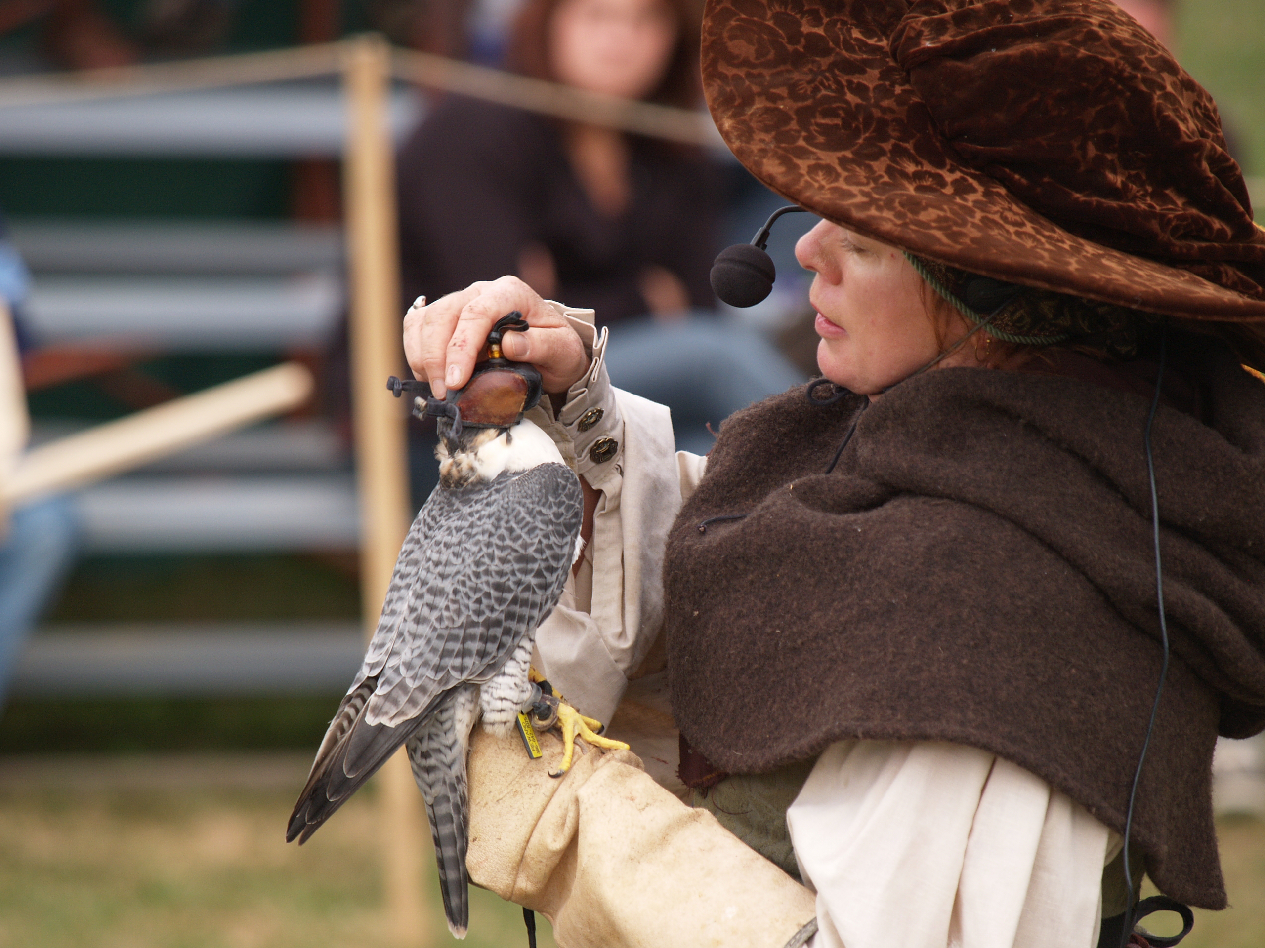 Picture #20: Hooding the falcon Small: 640x503, 59,393 bytes (59K), (html file) Large: 2560x1920, 3,696,387 bytes (3.5M), (html file) Copyright, Michael Meissner 2005, All rights reserved Olympus E-1 camera with Olympus 50-200mm f/2.8-3.5 lens f/4.0, ISO 200, 1/200 sec, 200.0mm, shutter priority, SHQ, matrix metering, +2 sharpening 35mm equivalent focal length 401.0mm Taken by Michael Meissner on September 25, 2005 15:49:56 Last modified on September 25, 2005 at 21:43 |