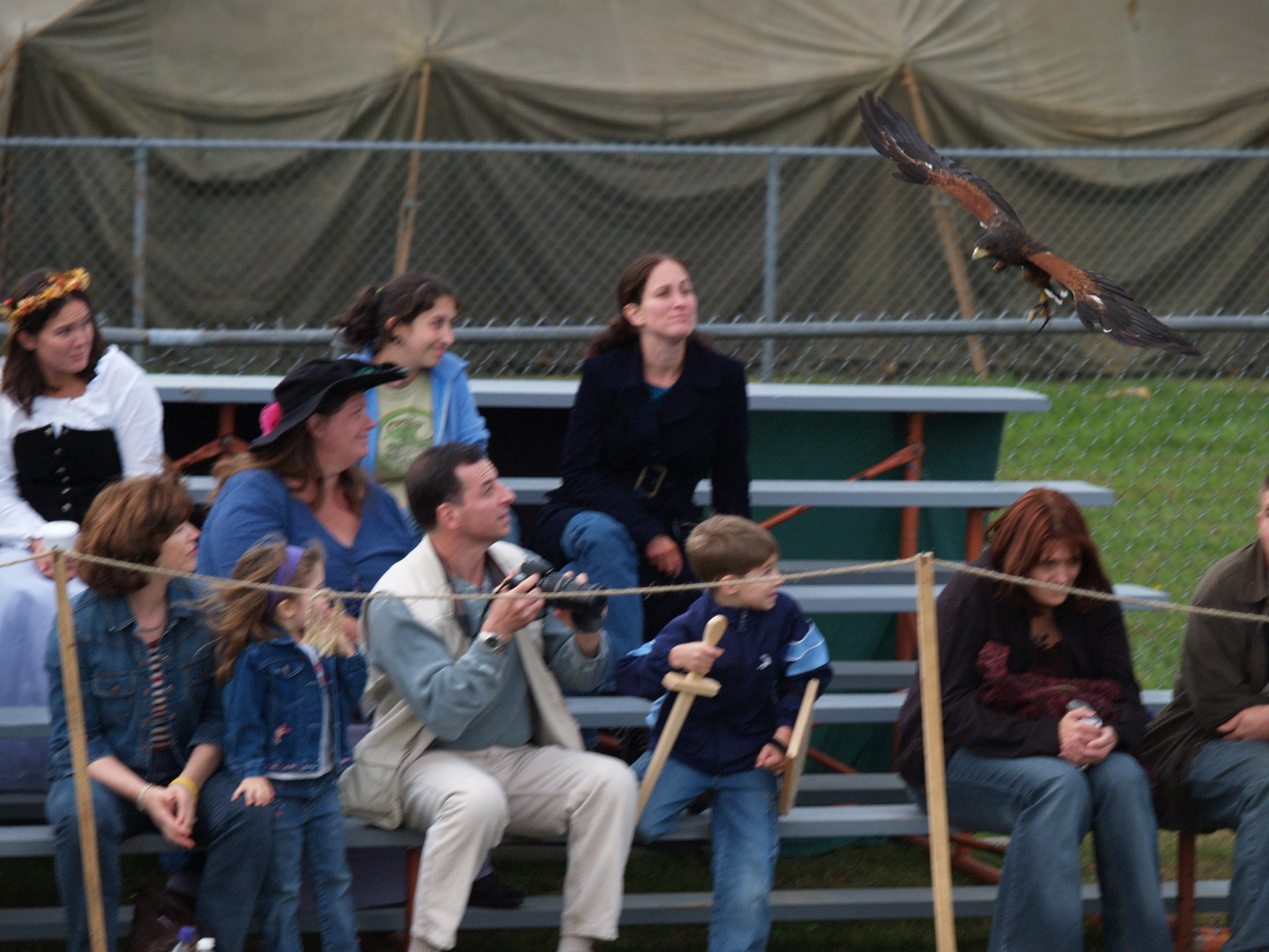 Picture #2: Hey, we're starting the show.... Small: 640x503, 52,437 bytes (52K), (html file) Large: 2560x1920, 3,577,523 bytes (3.4M), (html file) Copyright, Michael Meissner 2005, All rights reserved Olympus E-1 camera with Olympus 50-200mm f/2.8-3.5 lens f/4.0, ISO 200, 1/400 sec, 101.0mm, auto mode, SHQ, center weight metering, +2 sharpening 35mm equivalent focal length 202.0mm Taken by Michael Meissner on September 25, 2005 11:41:30 Last modified on September 25, 2005 at 21:36 |