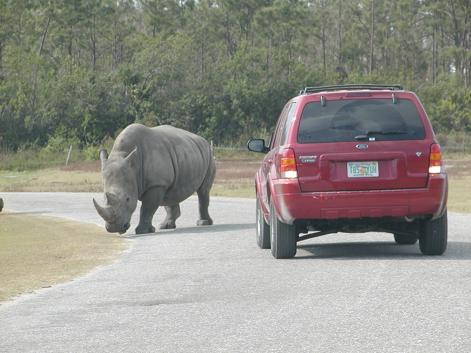 Picture #48: Caution, rhinos have right of way #2 Small: 800x623, 105,040 bytes (103K), (html file) Large: 1600x1200, 1,292,170 bytes (1.2M), (html file) Copyright, Michael Meissner 2005, All rights reserved Olympus C-2100UZ camera f/4.0, ISO 100, 1/500 sec, 32.5mm, auto mode, SHQ, matrix metering 35mm equivalent focal length 180.0mm Extra equipment used: Polarizer, shot through car window Taken by Michael Meissner on February 23, 2005 14:34:51 Last modified on July 21, 2005 at 15:17 |
