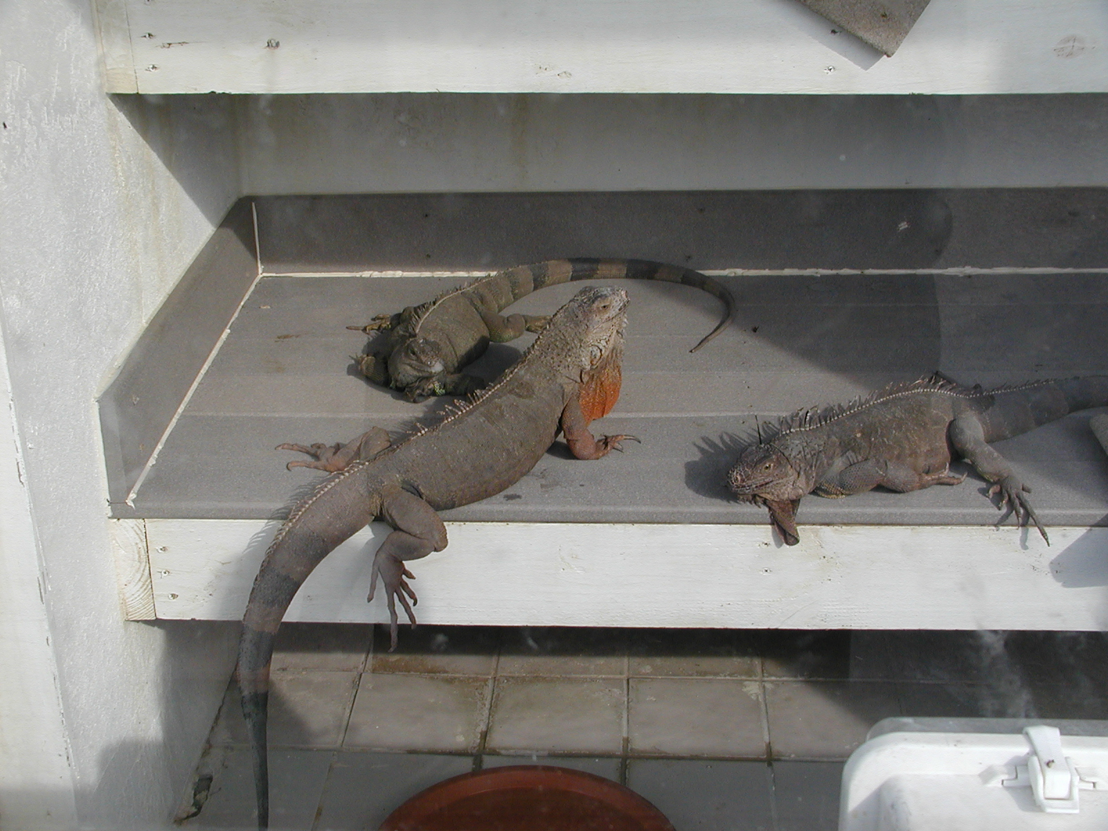 Picture #20: Iguanas Small: 800x623, 61,732 bytes (61K), (html file) Large: 1600x1200, 1,029,748 bytes (1006K), (html file) Copyright, Michael Meissner 2005, All rights reserved Olympus C-2100UZ camera f/4.0, ISO 100, 1/650 sec, 9.7mm, auto mode, SHQ, matrix metering 35mm equivalent focal length 54.0mm Extra equipment used: Polarizer Taken by Michael Meissner on February 23, 2005 15:48:46 Last modified on July 21, 2005 at 15:24 |