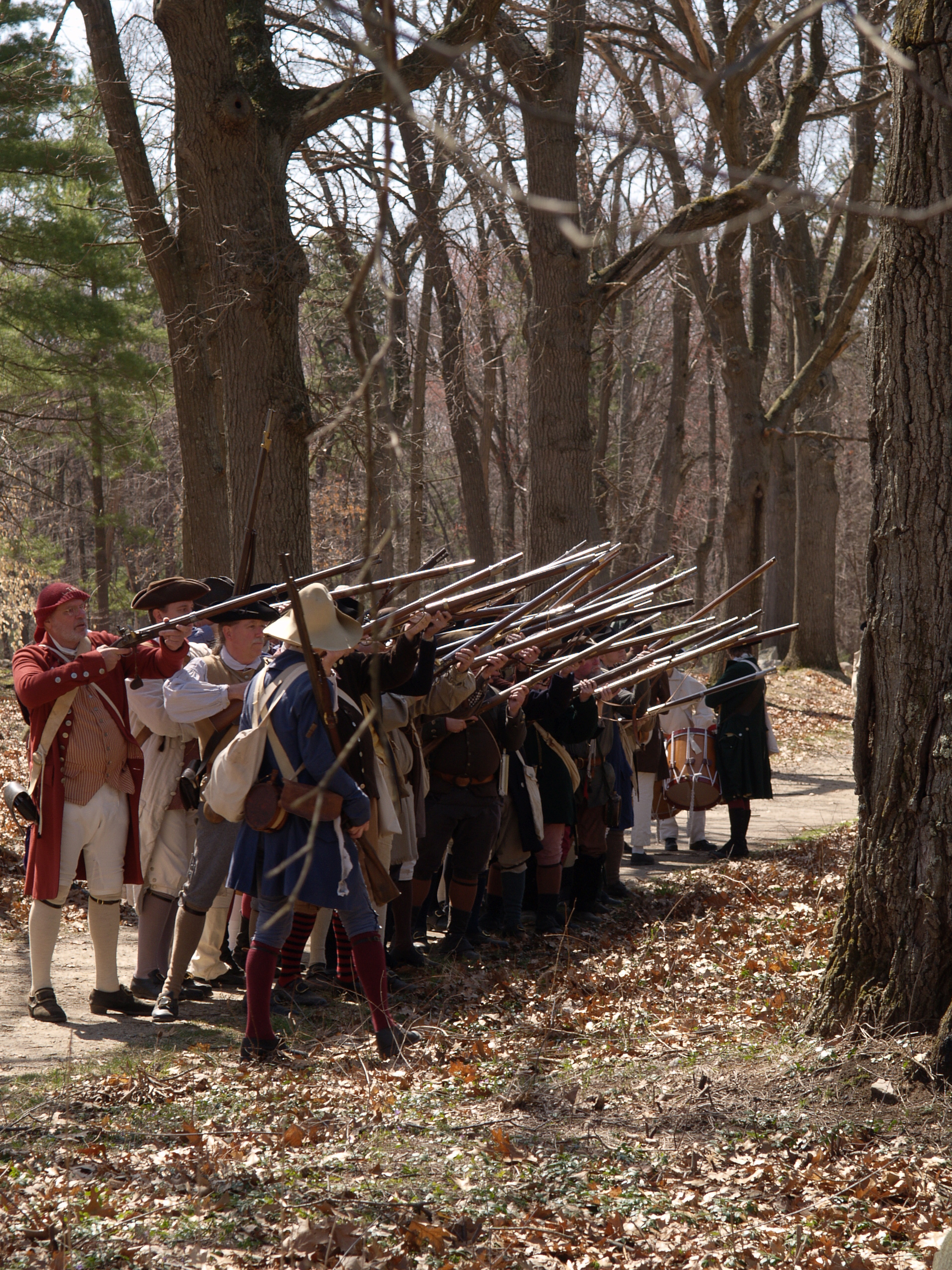 Picture #35: Colonists firing Small: 800x623, 195,564 bytes (191K), (html file) Large: 1600x1200, 2,843,998 bytes (2.7M), (html file) Copyright, Michael Meissner 2005, All rights reserved Olympus E-1 camera with Olympus 14-54mm f/2.8-3.5 lens f/7.1, ISO 200, 1/500 sec, 54.0mm, auto mode, SHQ, matrix metering, -2 contrast, +2 sharpening, continous focus 35mm equivalent focal length 108.0mm Taken by Michael Meissner on April 16, 2005 14:19:02 Last modified on May 04, 2005 at 22:31 |