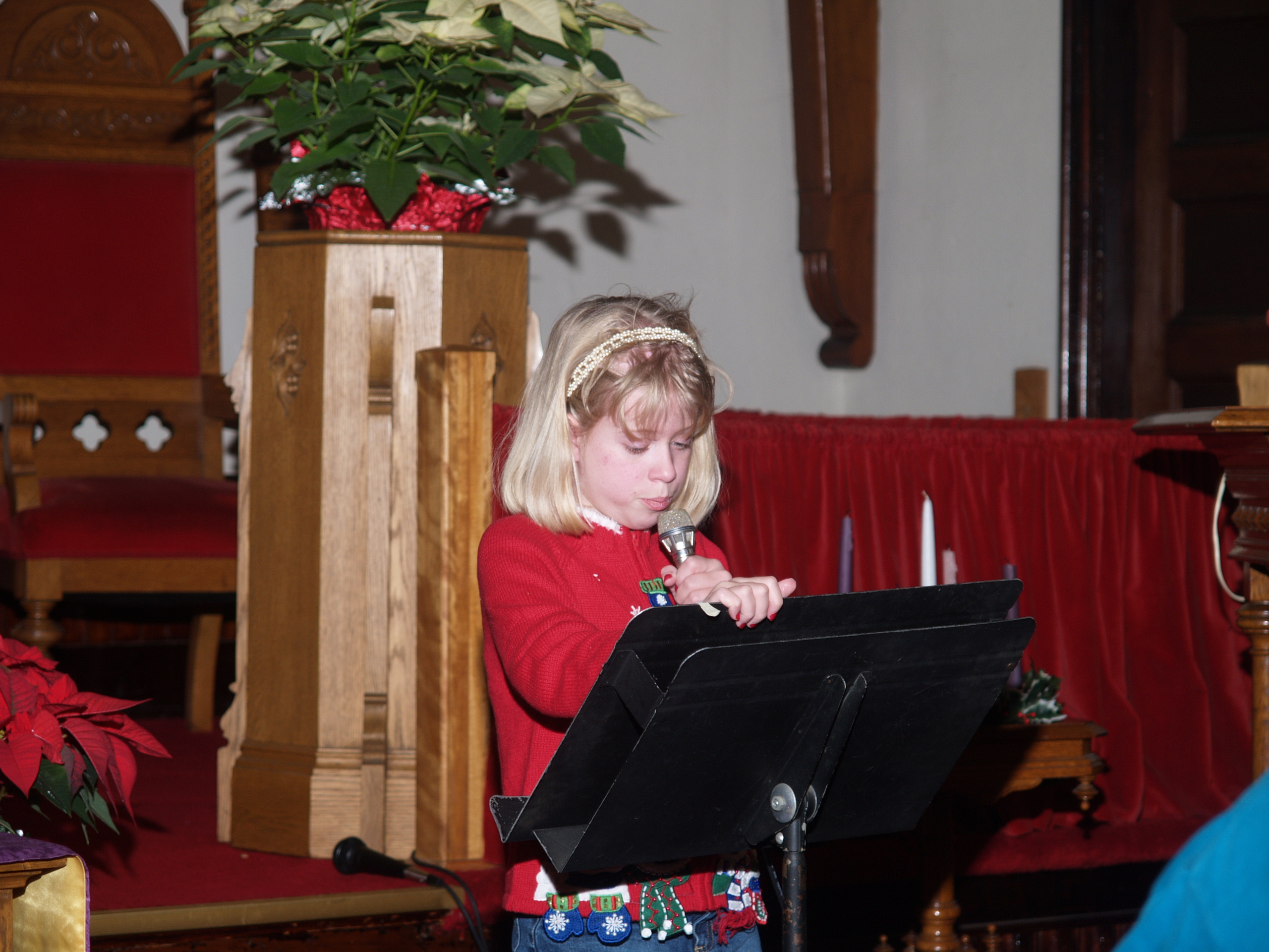 Picture #8: SACC Christmas pagent #13 Small: 640x503, 77,167 bytes (76K), (html file) Large: 2560x1920, 2,787,224 bytes (2.7M), (html file) Copyright, Michael Meissner 2005, All rights reserved Olympus E-1 camera with Olympus 14-54mm f/2.8-3.5 lens f/5.6, ISO 200, FL-50 flash, 1/160 sec, 50.0mm, manual mode, SHQ, matrix metering, +2 sharpening 35mm equivalent focal length 100.0mm Extra equipment used: FL-50 flash Taken by Michael Meissner on December 18, 2005 11:22:15 Last modified on December 18, 2005 at 12:58 |