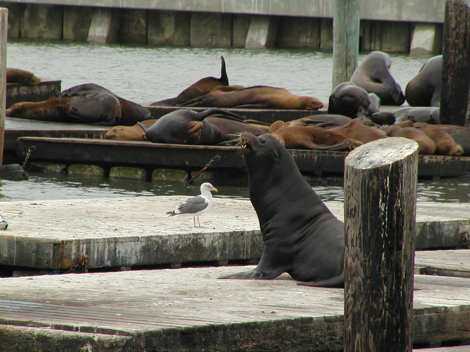 Picture #50: Seagull amongst the sealions Small: 800x623, 63,188 bytes (62K), (html file) Large: 1600x1200, 948,120 bytes (926K), (html file) Copyright, Michael Meissner 2005, All rights reserved Olympus C-2100UZ camera f/6.3, ISO 100, 1/500 sec, 54.0mm, auto mode, SHQ, cloudy, matrix metering 35mm equivalent focal length 300.0mm Taken by Michael Meissner on August 21, 2005 16:46:00 Last modified on August 27, 2005 at 13:02 |