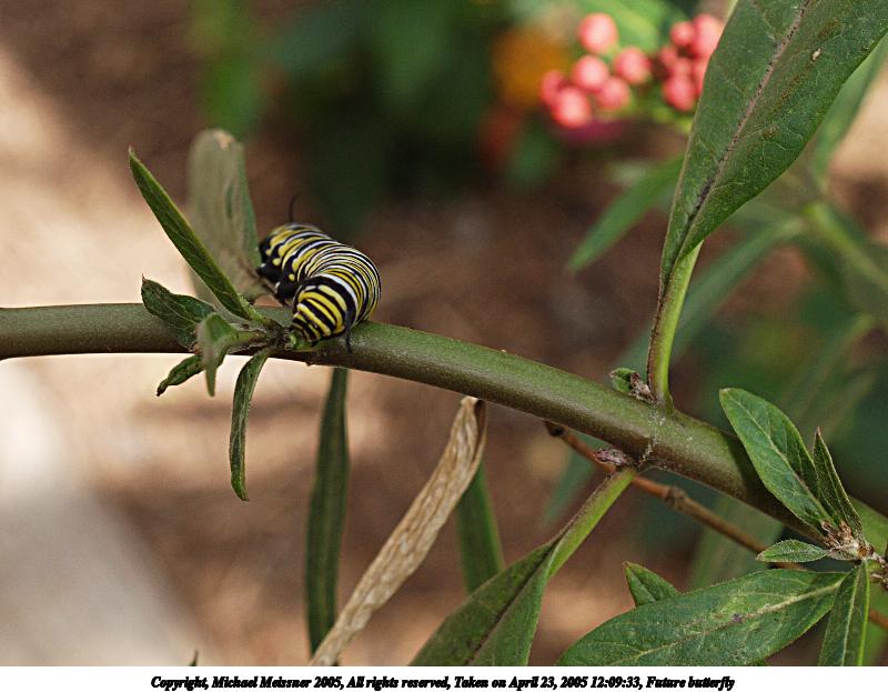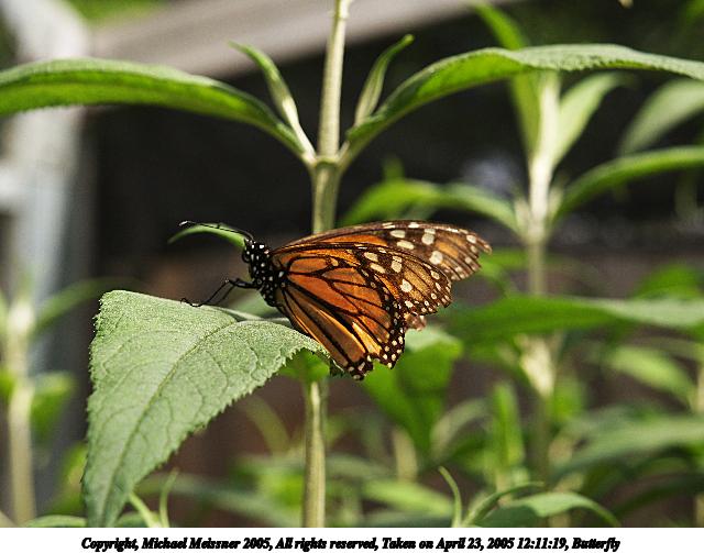 Picture #2: Future butterfly Thumb: 400x300, 33,739 bytes (33K) Small: 800x623, 75,240 bytes (74K), (html file) Large: 1600x1200, 2,165,274 bytes (2.1M), (html file) Copyright, Michael Meissner 2005, All rights reserved Olympus E-1 camera with Olympus 14-54mm f/2.8-3.5 lens f/5.0, ISO 100, 1/160 sec, 32.0mm, auto mode, SHQ, matrix metering, -2 contrast, +2 sharpening 35mm equivalent focal length 64.0mm Taken by Michael Meissner on April 23, 2005 12:09:33 Last modified on May 30, 2005 at 09:46 |