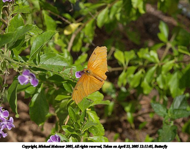 Picture #3: Butterfly Thumb: 320x240, 34,131 bytes (34K) Small: 640x503, 70,215 bytes (69K), (html file) Large: 2560x1920, 4,967,763 bytes (4.7M), (html file) Copyright, Michael Meissner 2005, All rights reserved Olympus E-1 camera with Olympus 14-54mm f/2.8-3.5 lens f/5.6, ISO 100, 1/320 sec, 50.0mm, auto mode, SHQ, matrix metering, -2 contrast, +2 sharpening 35mm equivalent focal length 100.0mm Taken by Michael Meissner on April 23, 2005 12:11:05 Last modified on May 30, 2005 at 09:48 |