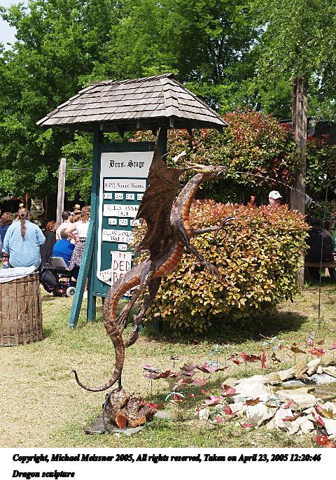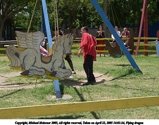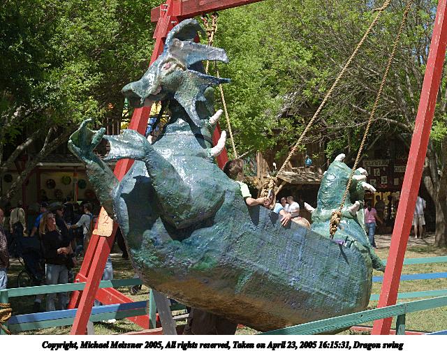 Picture #12: Dragon swing Thumb: 320x240, 41,930 bytes (41K) Small: 640x503, 121,536 bytes (119K), (html file) Large: 2560x1920, 5,914,750 bytes (5.6M), (html file) Copyright, Michael Meissner 2005, All rights reserved Olympus E-1 camera with Olympus 14-54mm f/2.8-3.5 lens f/6.3, ISO 100, 1/320 sec, 37.0mm, auto mode, SHQ, spot metering, -2 contrast, +2 sharpening 35mm equivalent focal length 74.0mm Taken by Michael Meissner on April 23, 2005 16:15:31 Last modified on June 02, 2005 at 08:37 |