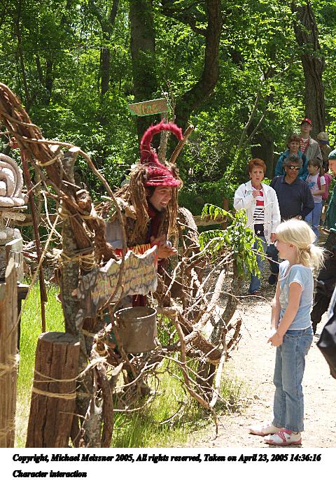 Picture #3: Character interaction Thumb: 240x320, 47,162 bytes (47K) Small: 480x686, 137,919 bytes (135K), (html file) Large: 1920x2560, 6,213,605 bytes (5.9M), (html file) Copyright, Michael Meissner 2005, All rights reserved Olympus E-1 camera with Olympus 14-54mm f/2.8-3.5 lens f/4.5, ISO 100, 1/200 sec, 47.0mm, auto mode, SHQ, matrix metering, -2 contrast, +2 sharpening 35mm equivalent focal length 94.0mm Taken by Michael Meissner on April 23, 2005 14:36:16 Last modified on June 02, 2005 at 08:04 |
