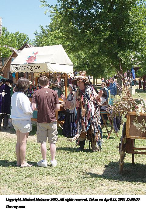Picture #6: The rag man Thumb: 240x320, 41,555 bytes (41K) Small: 480x686, 132,773 bytes (130K), (html file) Large: 1920x2560, 6,613,564 bytes (6.3M), (html file) Copyright, Michael Meissner 2005, All rights reserved Olympus E-1 camera with Olympus 14-54mm f/2.8-3.5 lens f/6.3, ISO 100, 1/250 sec, 29.0mm, auto mode, SHQ, matrix metering, -2 contrast, +2 sharpening 35mm equivalent focal length 58.0mm Taken by Michael Meissner on April 23, 2005 15:08:33 Last modified on June 02, 2005 at 08:21 |