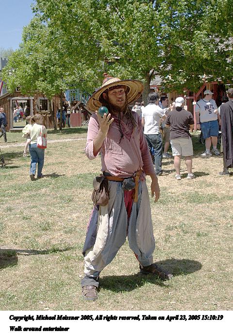 Picture #7: Walk around entertainer Thumb: 240x320, 39,211 bytes (39K) Small: 480x686, 129,343 bytes (127K), (html file) Large: 1920x2560, 6,726,418 bytes (6.4M), (html file) Copyright, Michael Meissner 2005, All rights reserved Olympus E-1 camera with Olympus 14-54mm f/2.8-3.5 lens f/7.1, ISO 100, 1/250 sec, 23.0mm, auto mode, SHQ, matrix metering, -2 contrast, +2 sharpening 35mm equivalent focal length 46.0mm Taken by Michael Meissner on April 23, 2005 15:10:19 Last modified on June 02, 2005 at 08:24 |